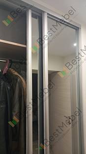 Заказ 00000531079, изделие Двери-купе Глейз 1 BMS (1000х2400х34)Шкаф делали сами по своим размерам, заполняя имеющийся угол. Надо было подобрать двери, чтобы идеально вписались в заданный проем, и чтобы было бюджетно. Все получилось: Двери-купе Глейз 1 BMS отличные, по размерам все идеально получилось подобрать. Наверно, только этот продавец и предлагает такую гибкую размерную сетку по приемлемым ценам. Сами двери добротные.