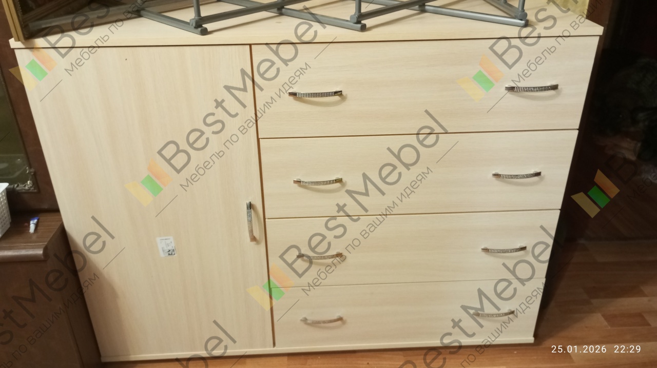 Комод отличный. Всё ровненько сделано, все комплектующие есть. Доставка вовремя. Рекомендую.