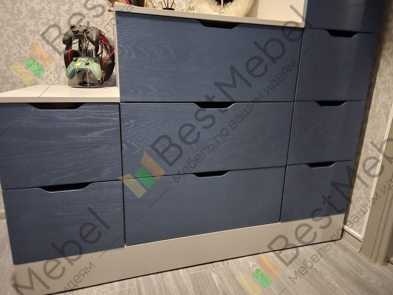 Комод Нордли Nordli 20 представляет собой композицию из трех расположенных «лесенкой» модулей. Удобная система хранения включает в себя девять выдвижных ящиков разных размеров, в которых поместятся одежда, постельное белье и всевозможные бытовые вещи. Верхняя часть лаконичного комода в духе сканди станет идеальной подставкой для стильного декора, уходовых средств или книг. Купить комод Нордли Nordli 20 в спальню, гостиную или прихожую вы сможете в нашем интернет-магазине. Выбирайте мебель в стиле IKEA (ИКЕА) от производителя BestMebelShop!