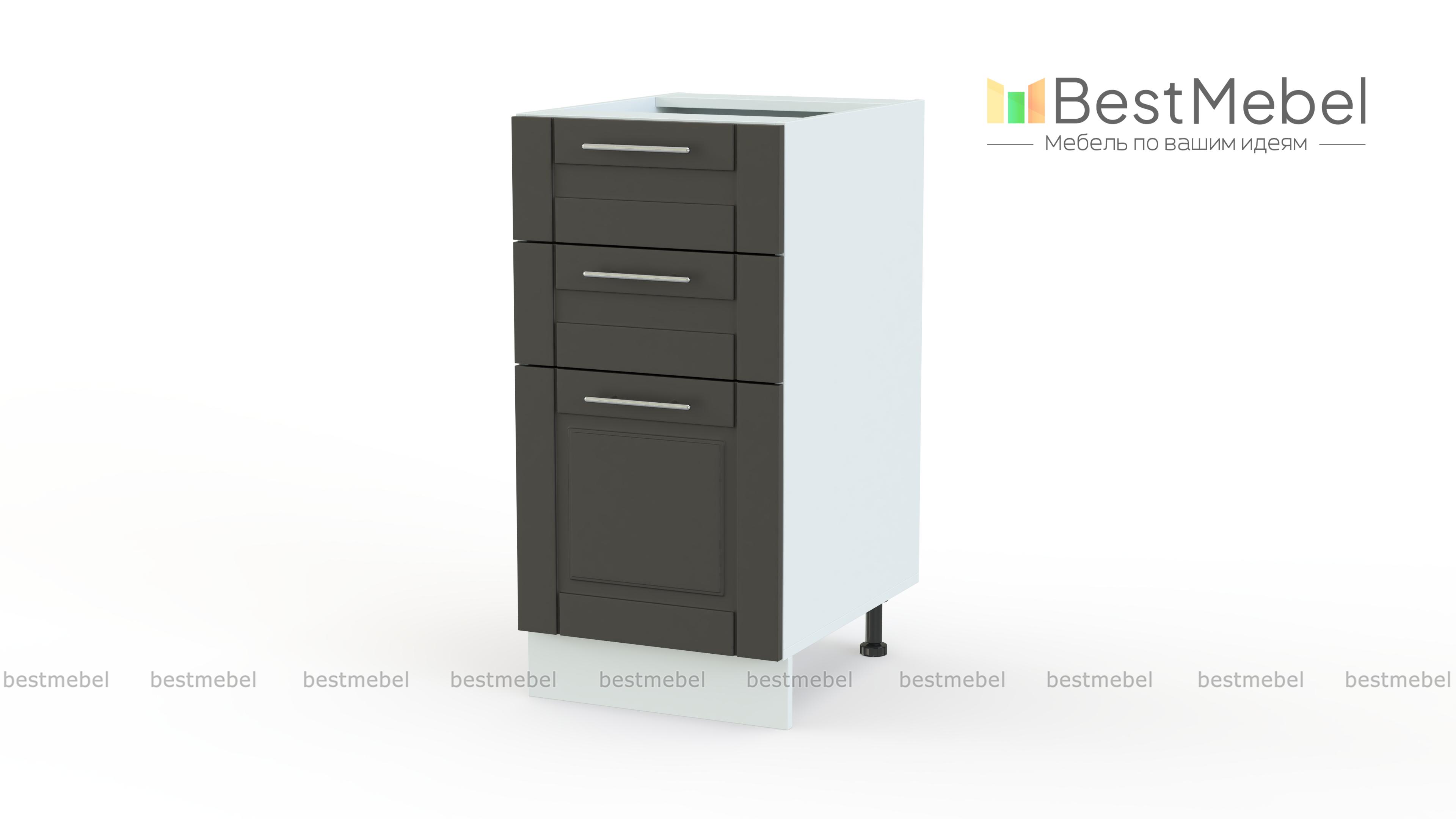 Шкаф нижний 3 ящика Палермо BMS гармонично дополнит другие модули серии и оптимизирует хранение мелочей. Компактная тумба оборудована тремя выдвижными ящиками разных размеров и удобно разместит как столовые приборы и кухонные аксессуары, так и более габаритные предметы. Классические филенчатые фасады с ручками-скобами под серебро порадуют актуальными расцветками и износостойкостью. Купить шкаф нижний 3 ящика Палермо BMS по доступной цене вы сможете в нашем интернет-магазине.