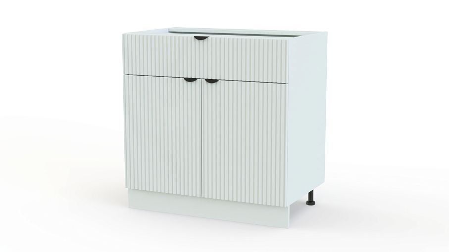 Шкаф нижний с 2-мя дверцами и ящиком Альберт BMS — это классическая кухонная модель с современным дизайном. Светлые рифленые фасады красиво сочетаются с контрастными торцевыми ручками. Для удобного доступа к кухонным мелочам и габаритной посуде тумба оборудована одним широким выдвижным ящиком и двухдверным распашным отделением. Купить шкаф нижний с 2-мя дверцами и ящиком Альберт BMS, изготовленный по вашим размерам, можно на сайте нашего интернет-магазина.