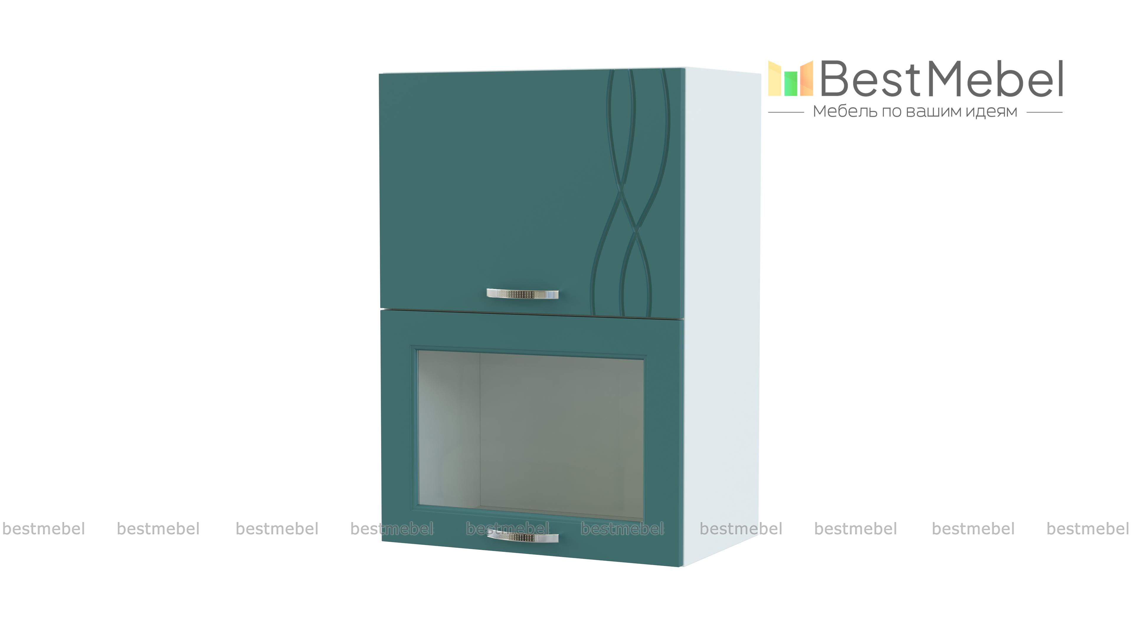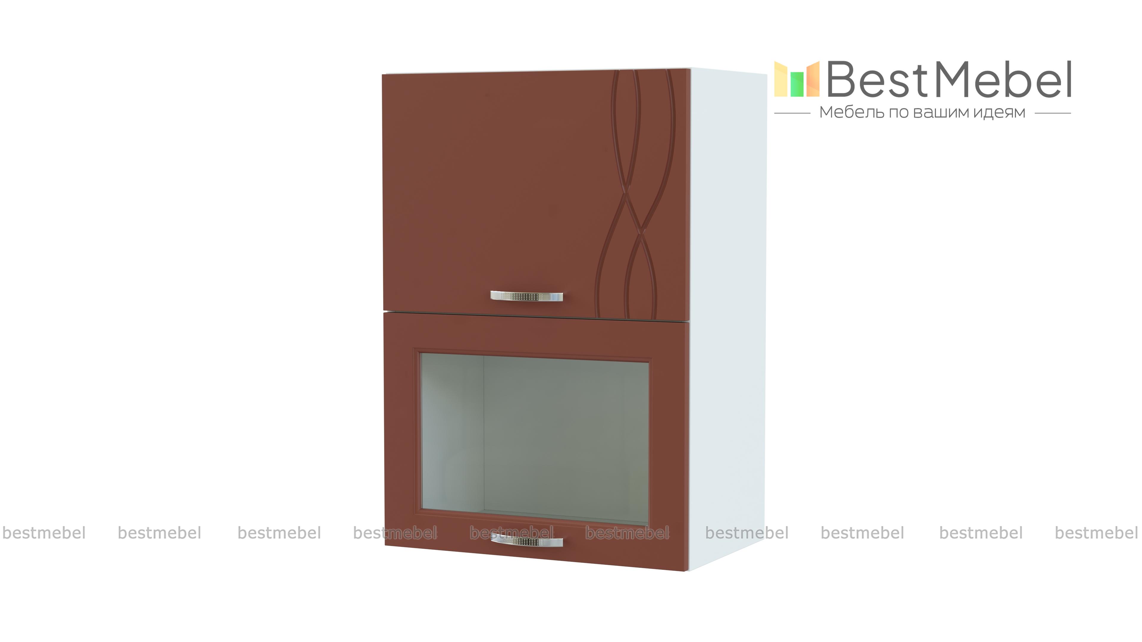 Шкаф-витрина навесной Софит BMS гармонично объединяет достоинства классики и современные тенденции. Шкаф станет оригинальным дополнением верхнего ряда модульного гарнитура и сделает композицию визуально легче. Модель оборудована двумя отделениями с откидными дверцами – с глухим фасадом и застекленным. Просторные внутренние отделения разместят посуду, чай или кофе, а украшением интерьера станут нежные матовые поверхности с фрезеровкой и вставка из прозрачного стекла. Купить шкаф-витрину навесной Софит BMS приглашаем в наш интернет-магазин.