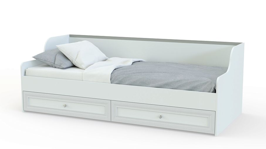 Детская кровать Твинс-1 BMS – практичное решение для спальни ребенка. Эстетичный внешний облик, комфортная конструкция, напоминающая диван. Есть спинка, небольшие подлокотники-боковины. Основание постели – ламелевое, что является преимуществом модели, оно усиливает ортопедические свойства матраса. В результате поверхность спального места всегда будет ровной и упругой. Система хранения реализована с помощью выдвижных ящиков. Их объем позволяет разместить там объемные одеяла, плед, текстиль.