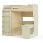 Кровать-чердак Маркиз 30 BMS – потрясающий комплект для малогабаритного помещения. Он организует постель и учебную зону, поможет хранить одежду. И всё это благодаря продуманному проекту на единой площади. Спальное место с бортами для безопасности находится наверху, туда ведет прочная лестница. Под основанием представлен стол с выдвижными ящиками, в которых легко разместятся необходимые предметы. Однодверный шкаф удачно включен в композицию (штанга внутри). Материал – ЛДСП, разнообразная цветовая гамма для заказа.