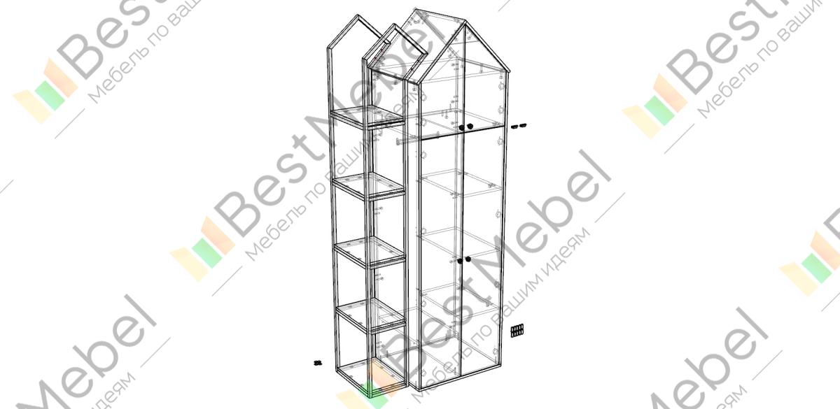Шкаф Домик 5 BMS объединен со стеллажом и разместит не только одежду, но и книги, школьные принадлежности, игрушки и еще многое другое. Распашной шкаф с антресолью выполнен из качественной ламинированной плиты в нейтральных тонах, а стеллаж имеет прочный металлический каркас. Дизайн в виде домика - прекрасный выбор для создания тематического детского интерьера, в котором комфортно учиться и отдыхать. Купить шкаф Домик 5 BMS с выбором цвета и фурнитуры вы сможете в нашем интернет-магазине.