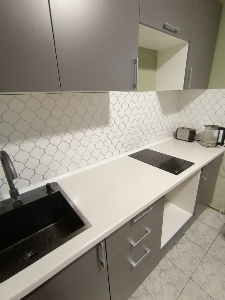 Хорошая бюджетная кухня.Можно использовать встроенную технику. Общая столешница .Быстрая Сборка мастером.