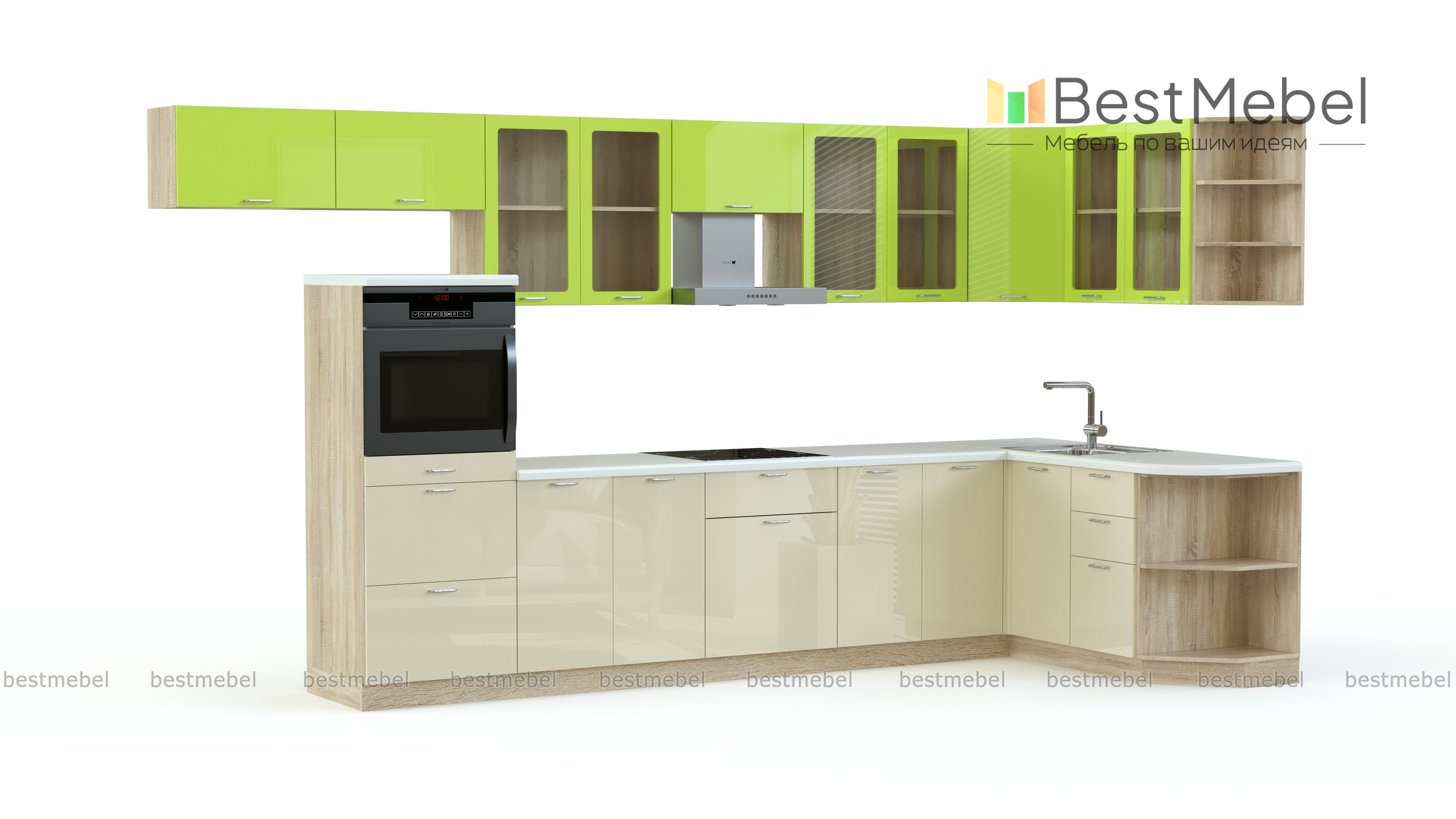 Кухня Киви-5 BMS поможет оборудовать просторную столовую в современном стиле. Угловая конструкция выгодно использует свободное пространство, а разнообразие входящих в комплект модулей позволит создать максимально комфортный интерьер и разместить все необходимое, от столовых приборов до бытовой техники. Лаконичная по форме, кухня смотрится эффектно и создает позитивное настроение благодаря гармоничному сочетанию свежих глянцевых оттенков навесных секций и матовых поверхностей под массив дерева нижней части. Купить кухню Киви-5 BMS, подобрав необходимые параметры, вы сможете в нашем интернет-магазине.
