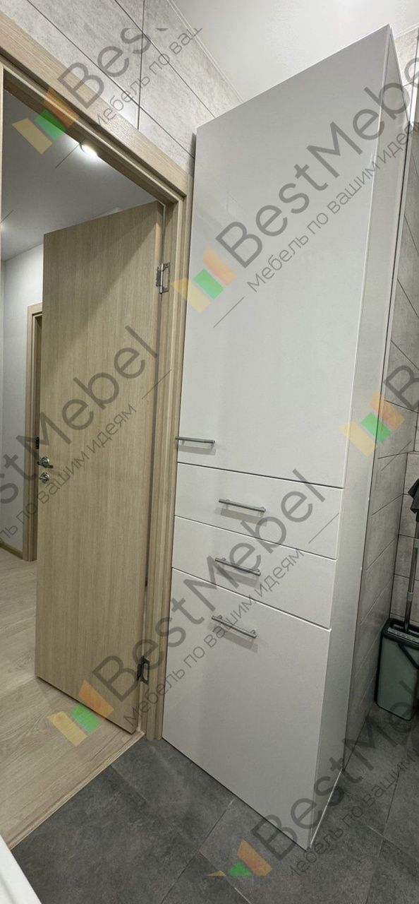Это мой 3-й. Пенал понравился и важно, что можно изменить размеры, цвет..Команда работает быстро и очень корректно общаются с заказчиком.На всех этапах поддержка работает, чуть ли не круглосуточно. Заказ незначительно был изменён только ширина 50 см. Консультант предложила другие навесы (?) для дверц, объяснив их преимущество.Доставка была тоже быстрой, водитель занёс в квартиру, всё было аккуратно упаковано.Сборка в удобное время на следующий день. Сборшик приятный молодой человек, работал просто красиво, никаких вопросов у меня даже не возникло. Всё снимается на видео. Пенал поставили в туалете место просто для него. Для хранения порошков, гелей и других хозяйственных пренадлежностей места достаточно. Организация на всех этапах отлажена до мелочей.Спасибо всем сотрудникам фирмы BestMebel. Особенно с кем общалась.С уважением Светлана