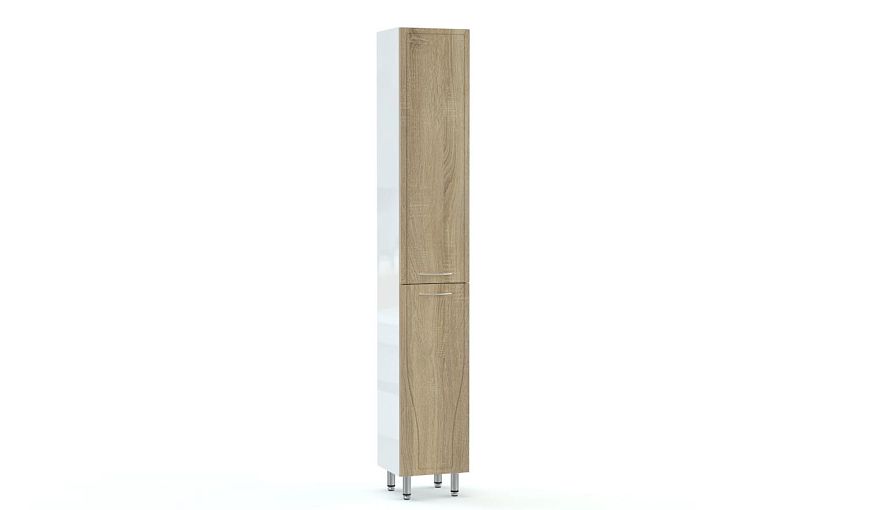 Пенал в ванную Восторг 6 BMS – это эффектный дизайн фасада, фигурно вырезанного и украшенного фрезеровкой, отличная вместительность и надежность конструкции. Удобная система хранения для гигиенических принадлежностей включает в себя два распашных отделения с полками. Высокие регулируемые опоры обеспечивают напольному пеналу устойчивость и облегчают уборку. Купить пенал в ванную Восторг 6 BMS, выполненный в древесном цвете, приглашаем в наш интернет-магазин.