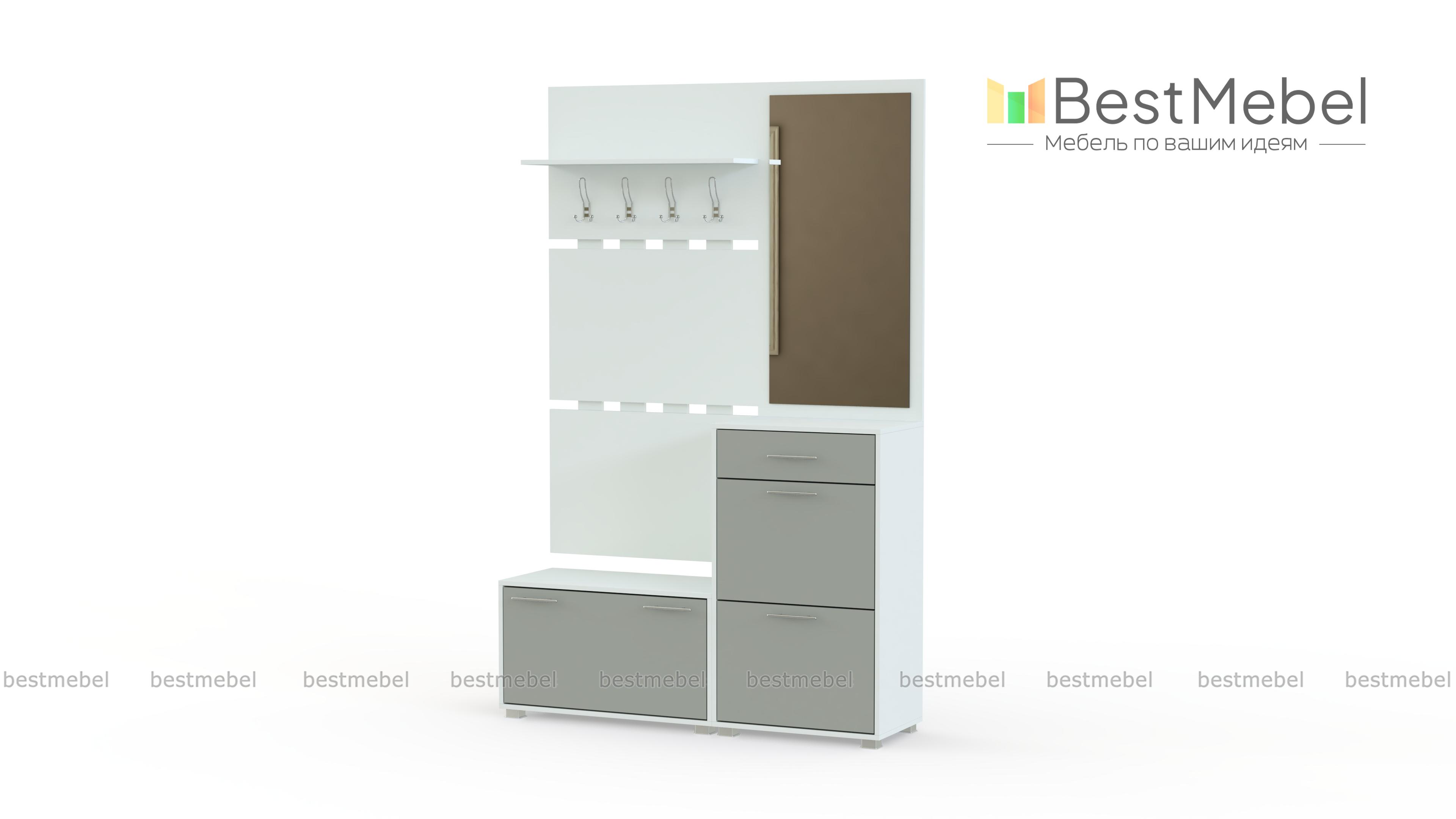Прихожая Моренго BMS - довольно широкая и вместительная модель для современных интерьеров. С помощью нашей палитры Вы можете заказать изделие не только в однотонном исполнении, но и в комбинированном варианте. Прихожая состоит из основных элементов: 2-х обувных тумб с удобными дверцами, на них имеются специальные кармашки, чтобы хранить обувь аккуратно и все пары были на виду. Кроме них имеется 2 панели: с зеркалом и вешалками, над рядом крючков предусмотрена полка для головных уборов. Купить прихожую Моренго BMS по низкой цене можно на нашем официальном сайте.