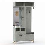 Прихожая Норт 11.4 BMS позволяет по максимуму использовать доступное пространство и компактно разместить вещи. Многофункциональная модель объединила открытую вешалку с крючками и штангами, распашную обувницу, зеркало с отделениями для мелочей и закрытую по бокам верхнюю полку. Минималистичные формы подчеркивает трендовый оттенок под бетон, а высокие скошенные ножки облегчают конструкцию. Купить прихожую Норт 11.4 BMS приглашаем в наш интернет-магазин с выбором фурнитуры и цвета по каталогу.