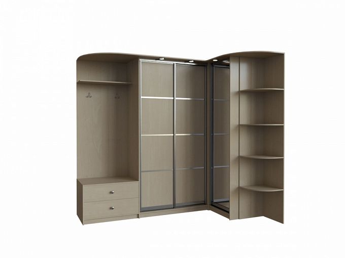 Шкаф-купе Вариант 20 BMS – отличное решение для меблировки современной прихожей. Угловая конструкция поможет по максимуму использовать возможности планировки, а разноплановые отделения, дополненные встроенной подсветкой, сделают входную зону комфортной. Модель оборудована раздвижной секцией, распашным пеналом с зеркальным фасадом, открытой вешалкой с тумбой и полкой и торцевым, безопасно скругленным стеллажом. Купить шкаф-купе Вариант 20 BMS вы сможете в нашем интернет-магазине, подобрав оптимальные параметры.