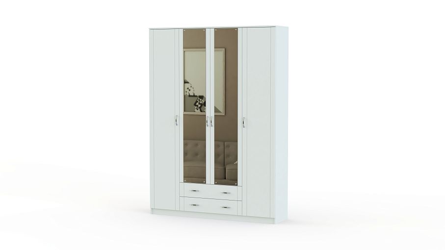 Шкаф 4-х дверный 8.04 Лотос BMS поможет упорядочить хранение предметов гардероба и постельных принадлежностей. Вместительная комбинированная модель станет незаменимым элементом меблировки спальни, а универсальный дизайн позволит легко вписать шкаф в разный по типу интерьер. За центральными зеркальными дверцами располагается отделение со штангой, боковые секции оборудованы бельевыми полками, а для мелочей предусмотрены два выдвижных ящика в основании. Купить шкаф 4-х дверный 8.04 Лотос BMS по демократичной цене приглашаем в наш интернет-магазин.
