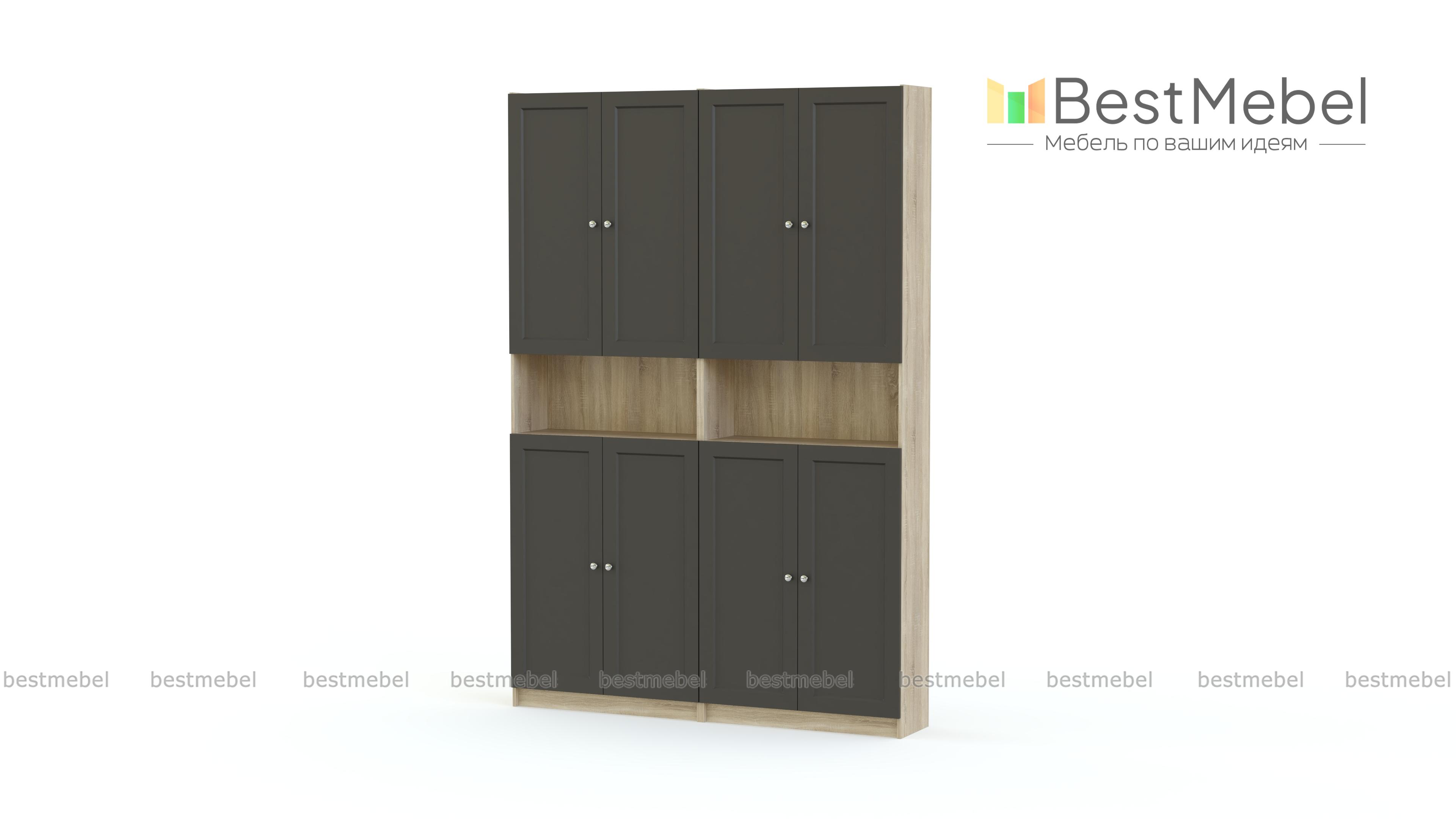 Шкаф Билли Оксберг Billy Oxberg 25 – практичная комбинация для хранения из двух распашных шкафов, разделенных нишами. За глухими дверцами будут находиться в порядке документы, книги и всевозможные бытовые вещи, а на открытых полках можно разместить декор и все необходимое в быстром доступе. Классический шкаф строгого темного цвета подходит для обустройства рабочей зоны, размещения в гостиной или столовой. Купить шкаф Билли Оксберг Billy Oxberg 25 приглашаем в наш интернет-магазин. Выбирайте мебель в стиле IKEA (ИКЕА) от производителя BestMebelShop!