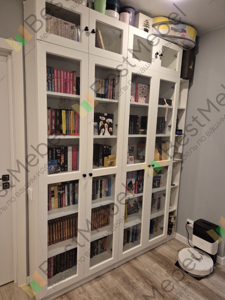 Очень симпатичный и удобный книжный шкаф. Вместительный. Недорогой. Привезли в срок. Заказ 00000579764,