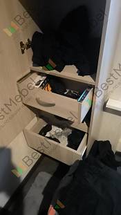 Хороший шкаф, размеры сами указали, как нам нужно было. На конец-то ящики вместительные есть! Много вещей влезло.Заказ 00000907557