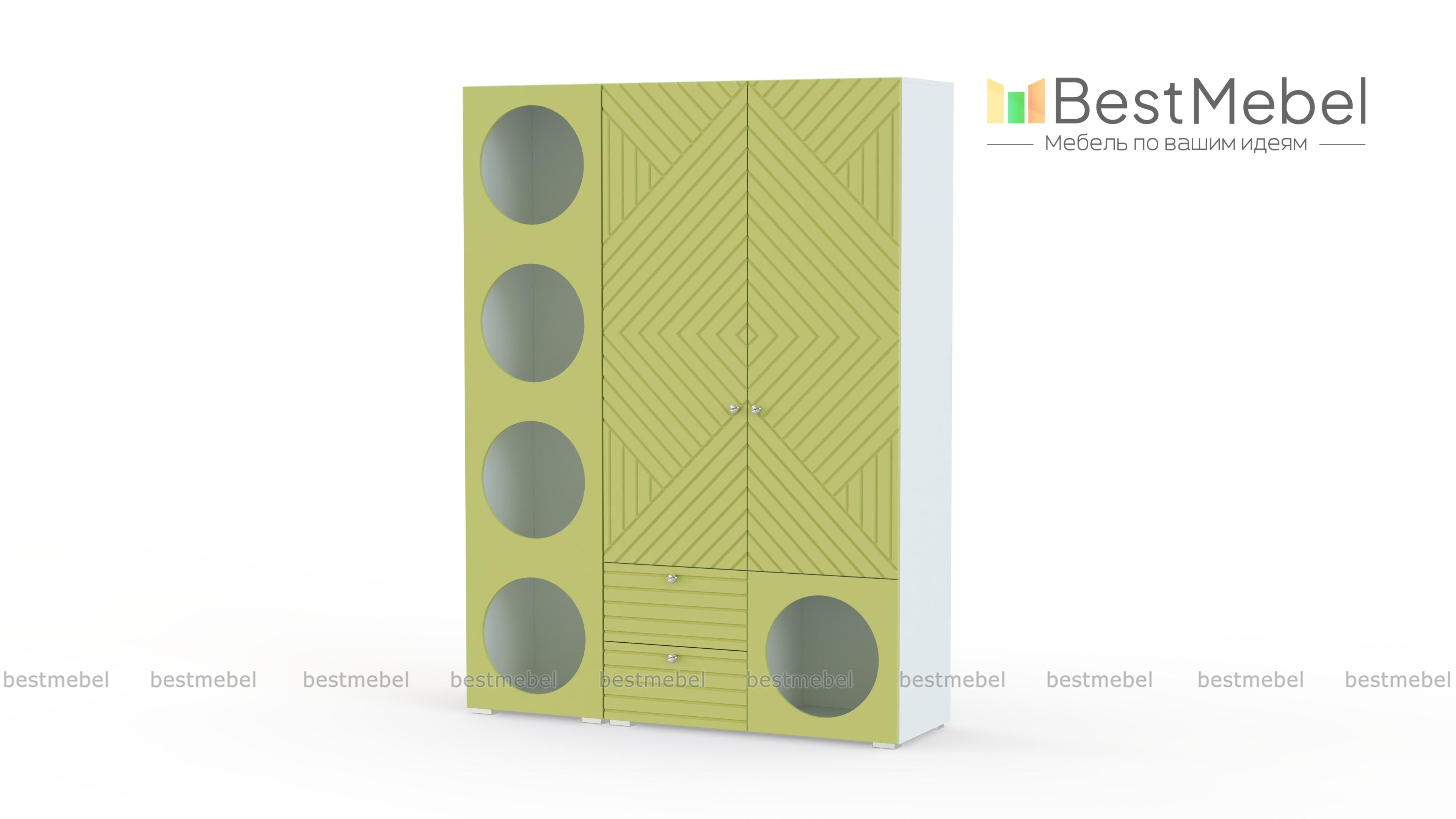 Шкаф распашной Авелин 15 BMS с характерными круглыми вырезами и геометрическим рисунком отражает модные тренды. Не занимая много места в комнате, шкаф приятно удивляет функциональностью. Конструкция, объединившая двухдверный гардероб и пенал с открытыми полками, позволяет разместить как одежду, так и принадлежности для школы и творчества, игрушки и многое другое. Купить шкаф распашной Авелин 15 BMS с возможностью выбора цвета и размеров приглашаем в наш интернет-магазин.