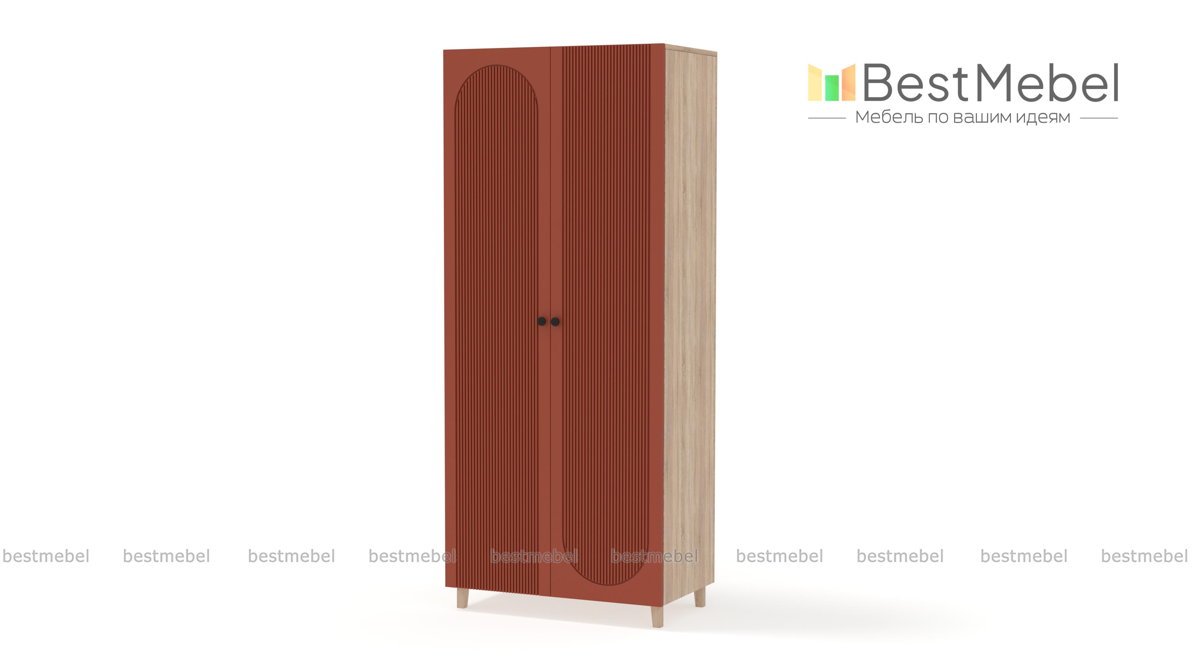 Шкаф распашной Рене 17 BMS в стильном темном дизайне добавит индивидуальности интерьеру. Высокие ножки выполнены в тон корпусу с древесным рисунком, фасад украшает оригинальный рельеф. Двухдверное распашное отделение со штангой и полками оптимально подходит для хранения базового гардероба в небольших спальнях, детских и прихожих. Купить шкаф распашной Рене 17 BMS вы сможете в нашем интернет-магазине, самостоятельно подобрав размеры и гармонирующую с интерьером цветовую гамму.