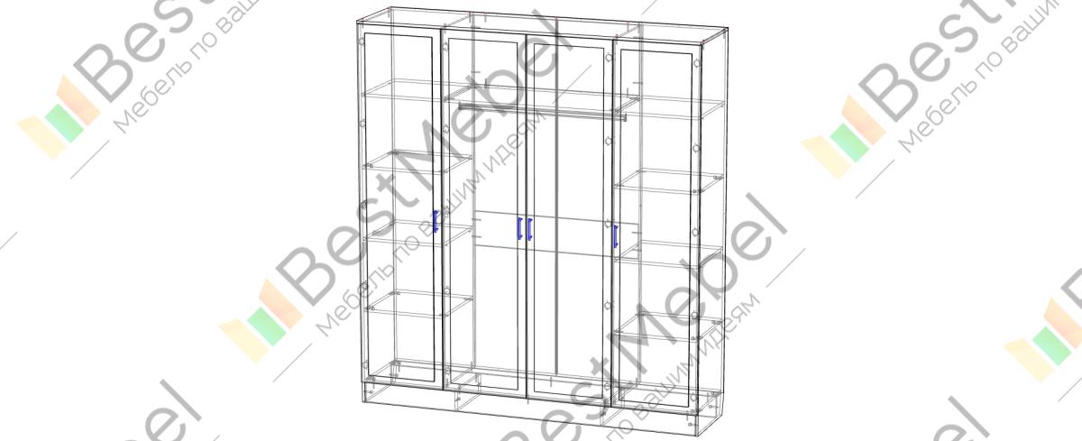 Шкаф распашной Волжанка BMS – оригинальное дизайнерское решение для вашей спальни или гостиной. Четырехдверная модель декорирована вставками из искусственной кожи строгих тонов, а рамочные фасады придают композиции эстетическую завершенность. Габариты изделия позволяют разместить множество предметов гардероба на просторных бельевых полках и вешалках, которые вы сможете с удобством расположить на овальной штанге. Купить шкаф распашной Волжанка BMS с возможностью изготовления по индивидуальным размерам вы можете в нашем интернет-магазине.