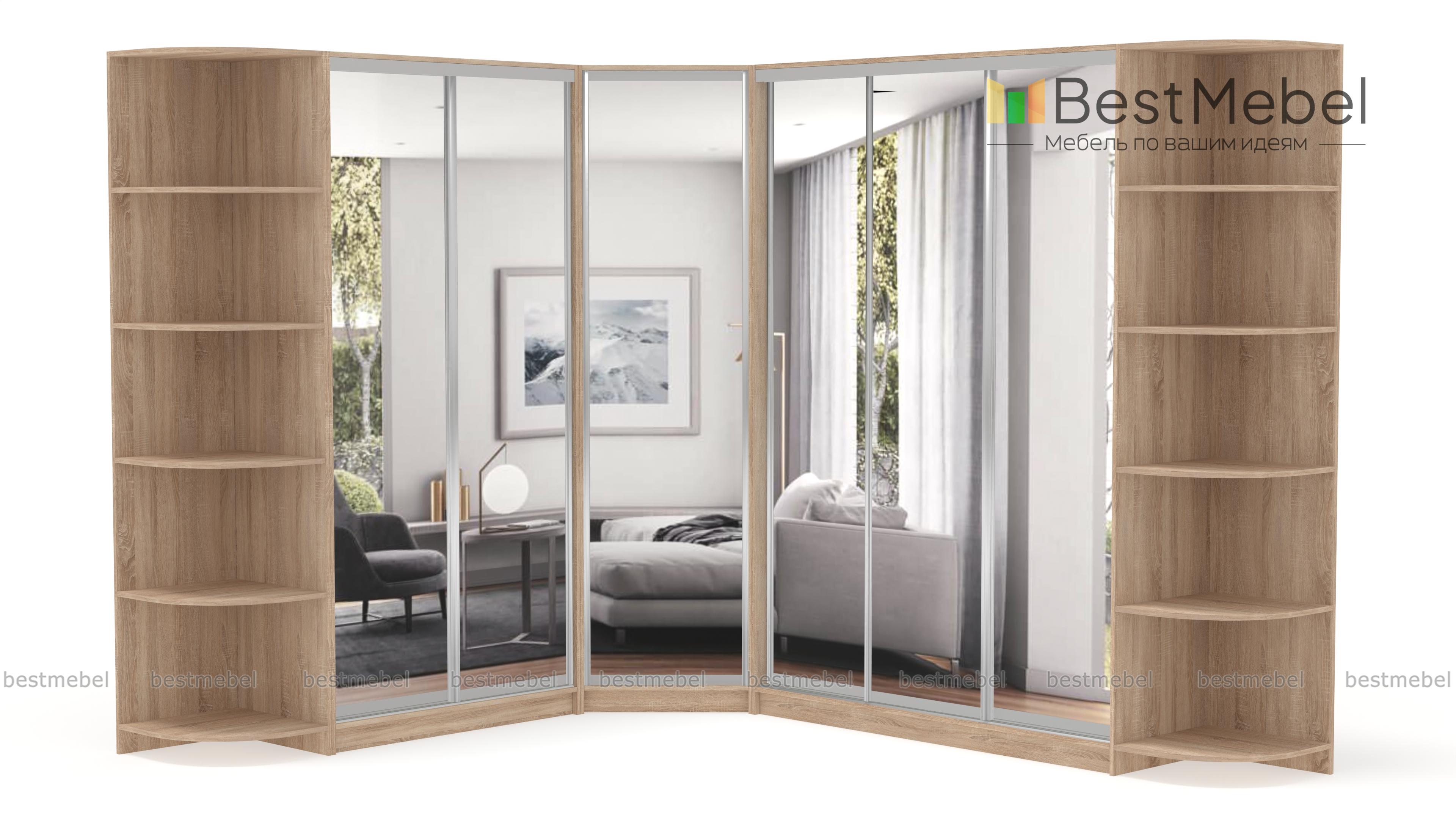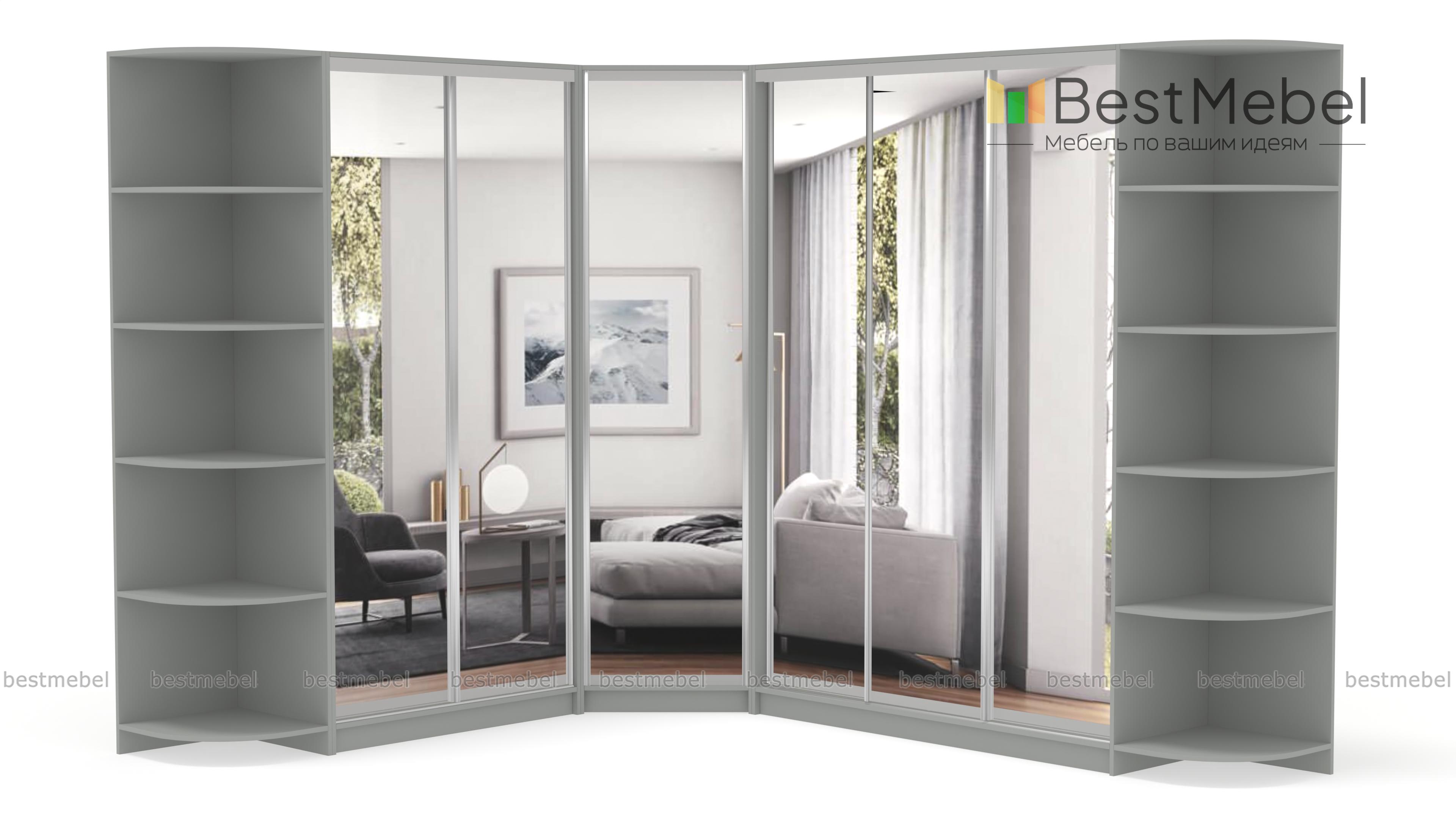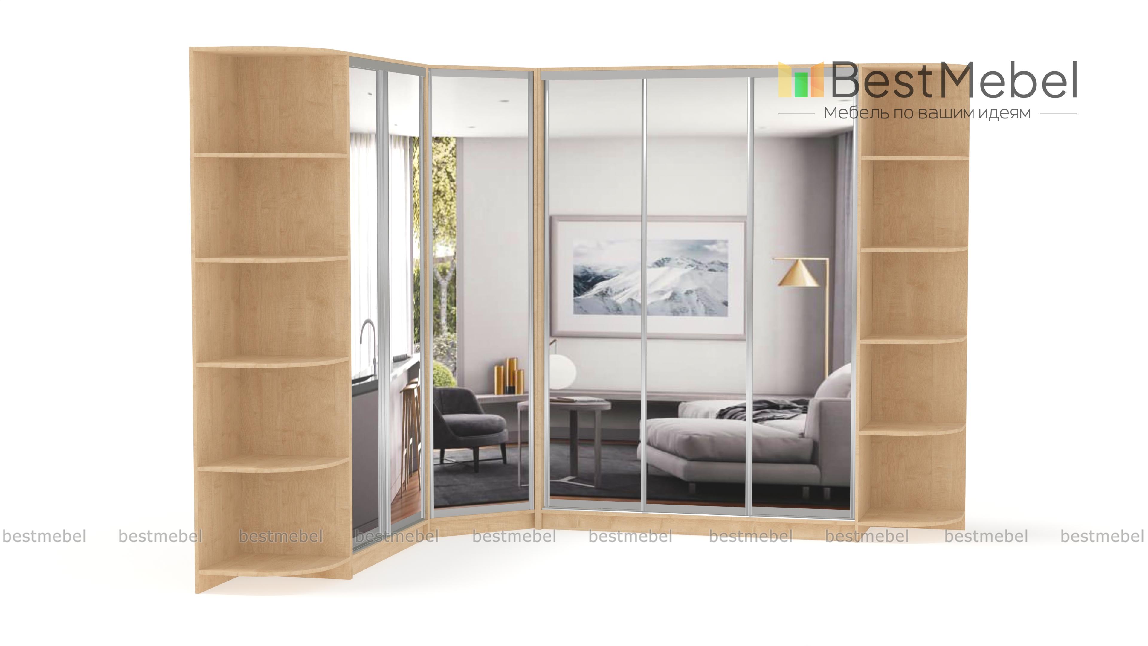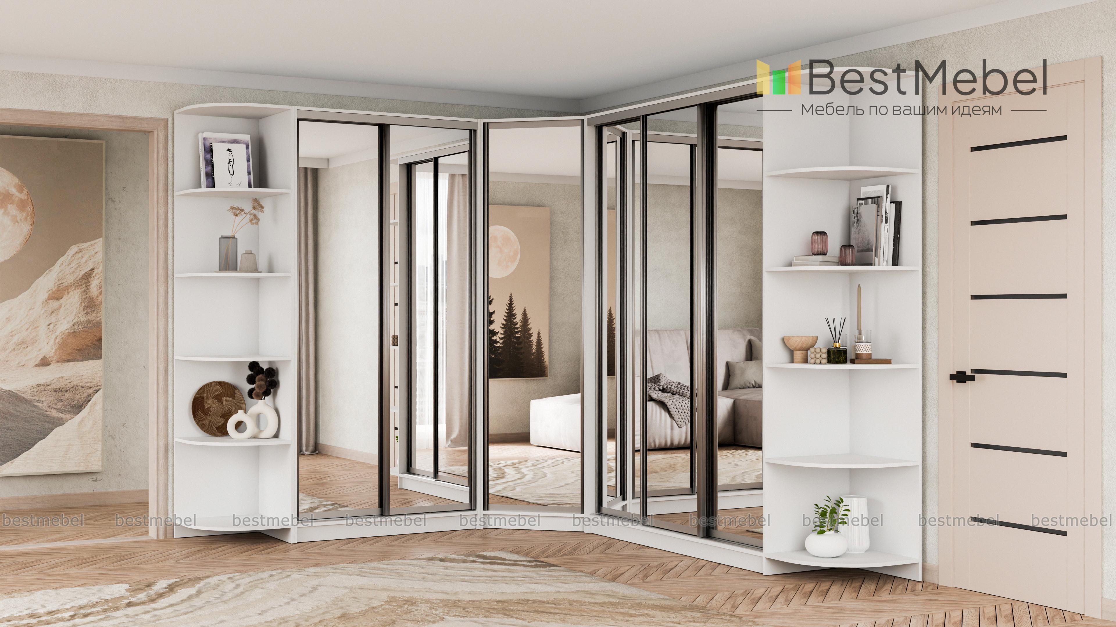 Шкаф угловой НКМ BMS – гигант для самого богатого гардероба. Даже если Вы активный любитель шопинга, всем приобретениям последних модных коллекций найдется здесь место. Супер вместительная угловая модель ослепляет сиянием зеркальных дверей-купе. А за ними прячется богатый ассортимент вариантов размещения одежды и обуви, это и штанги разной длины и удобные полочки. Над штангами предусмотрены антресольные отделы. Полностью зеркальные фасады сделают комнату просторнее и светлее. Элегантные дополнения в виде угловых элементов позволяют придать интерьеру нотку индивидуальности, используя декор. Купить шкаф угловой НКМ BMS можно быстро и недорого только у нас.
