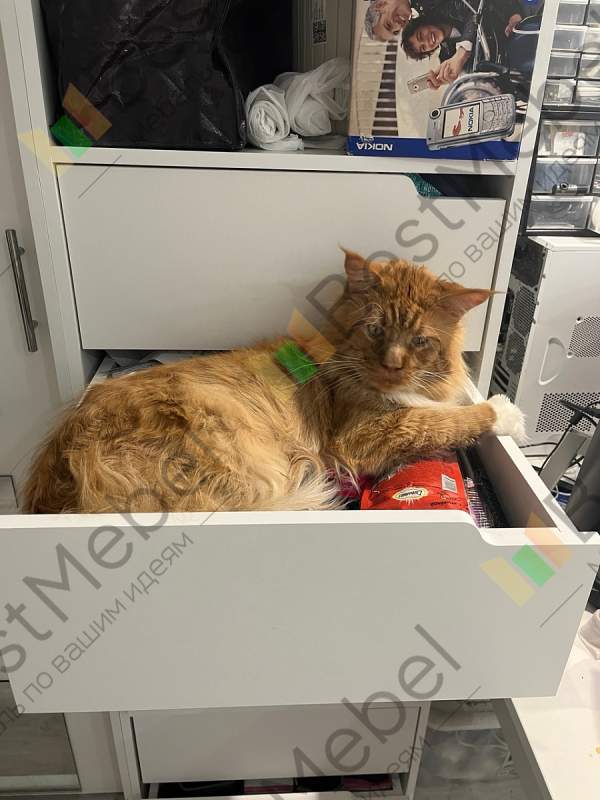 Заказ 00000341133. Люблю эту компанию за то, что все можно добавить и заказать по своим размерам, брала лет 5 назад у них шкафы, отличные, стоят как новенькие. В январе 2025 заказала Стеллаж для одежды Мирта 37 BMS с дополнениями которые мне были нужны, в этот раз как и в прошлый заказала ящики с ДСП дном, они очень хорошо себя показали, прочные удобные, не беспокоюсь, что дно прогнется или тяжелое нельзя класть. У меня кот Мэйн-кун 8 кг. Часто лежит в выдвижном ящике, в котором хранятся его лакомства. По прошлым заказам поняла, что все качественное, не стала заказывать суперпрочную кромку, да и вообще то что мне было моей целью оставила по умолчанию в базовом варианте и всё как в прежние годы великолепно. Привезли и подняли, занесли в квартиру без всяких уговоров, быстро вежливо! Сборщик приехал в удобное для нас время, собрал при нас, быстро и качественно!!!
