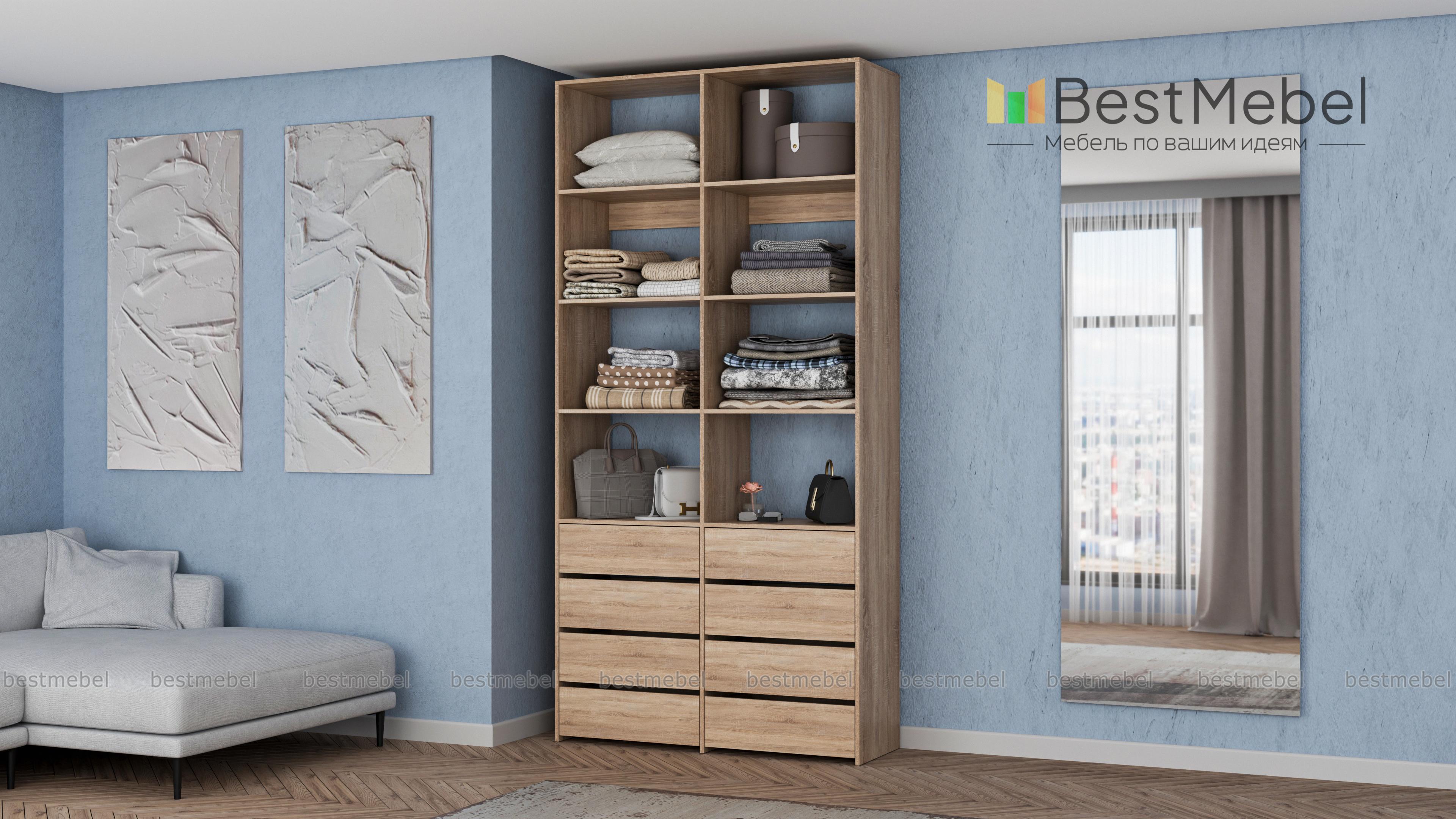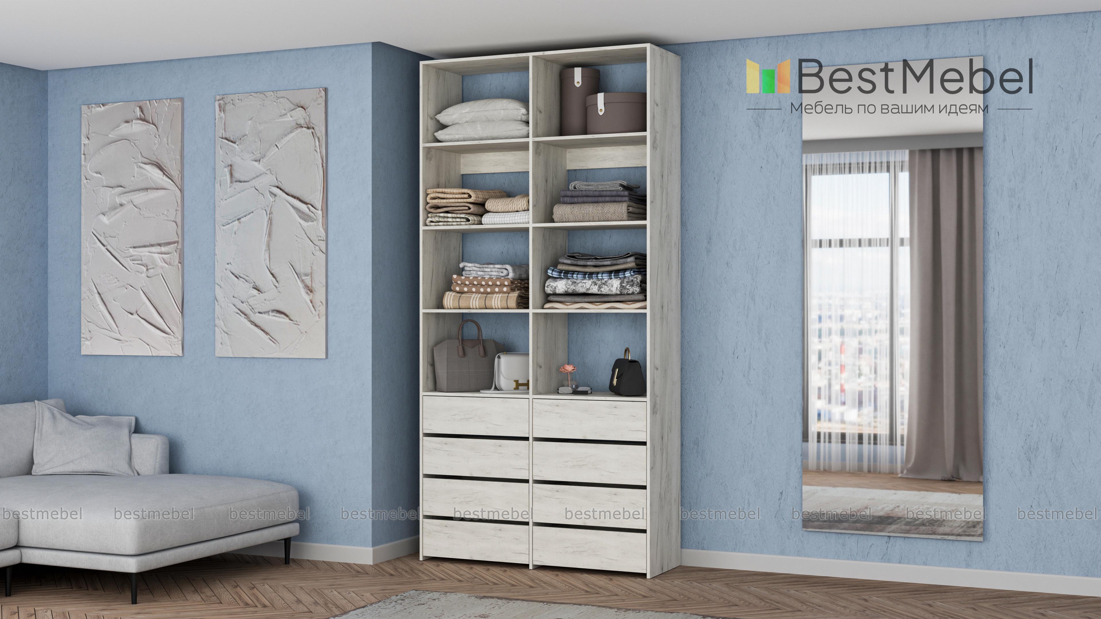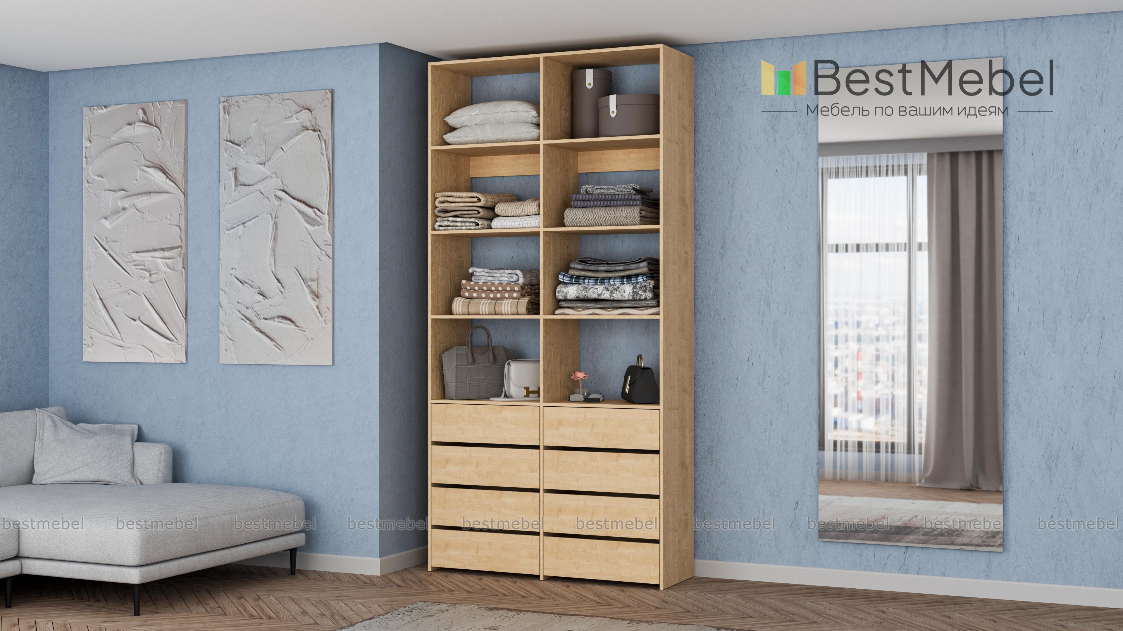 Стеллаж для одежды Мирта 40 BMS поможет вам грамотно спланировать пространство для хранения. Двухсекционная модель оборудована как открытыми полками, так и выдвижными ящиками, обеспечивая удобный доступ к разным предметам гардероба. Поверхности из ламинированной плиты отличаются износостойкостью и легко очищаются от загрязнений. Купить стеллаж для одежды Мирта 40 BMS с выбором наиболее подходящего оттенка и размеров приглашаем к нам в интернет-магазин.
