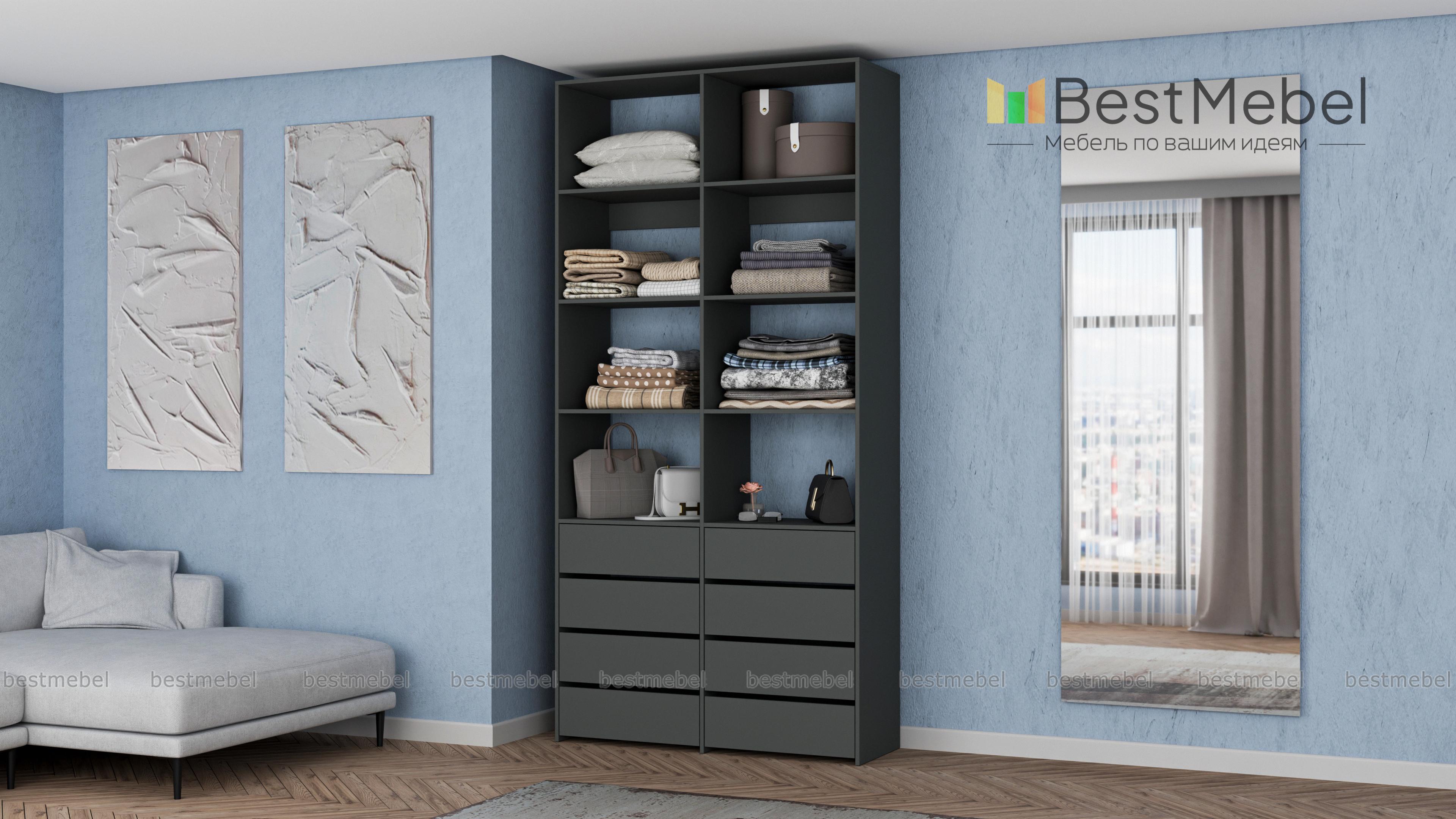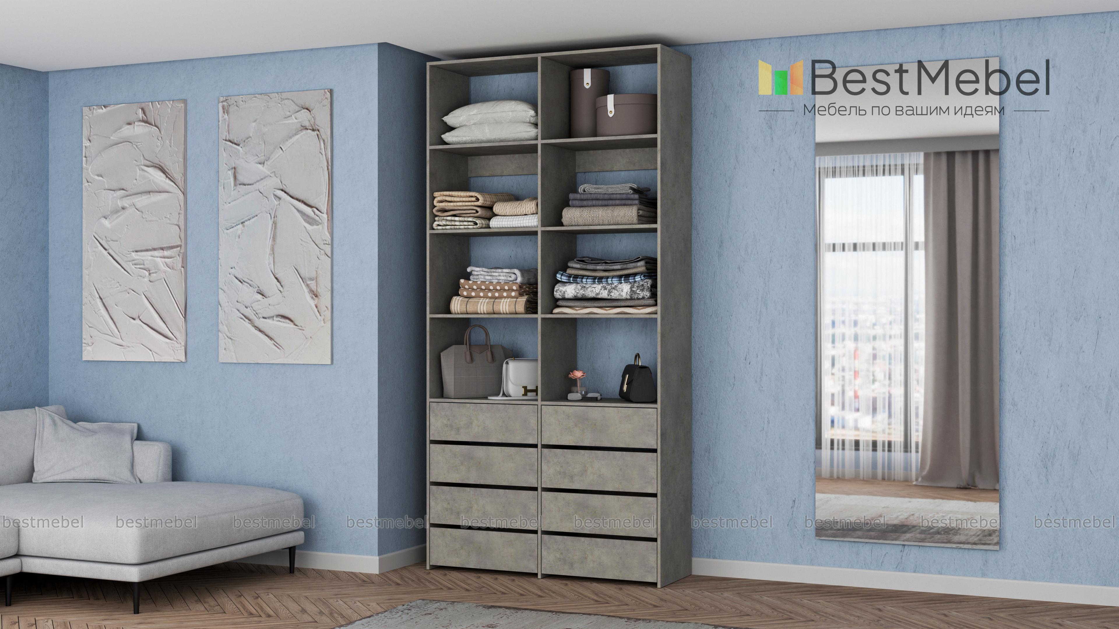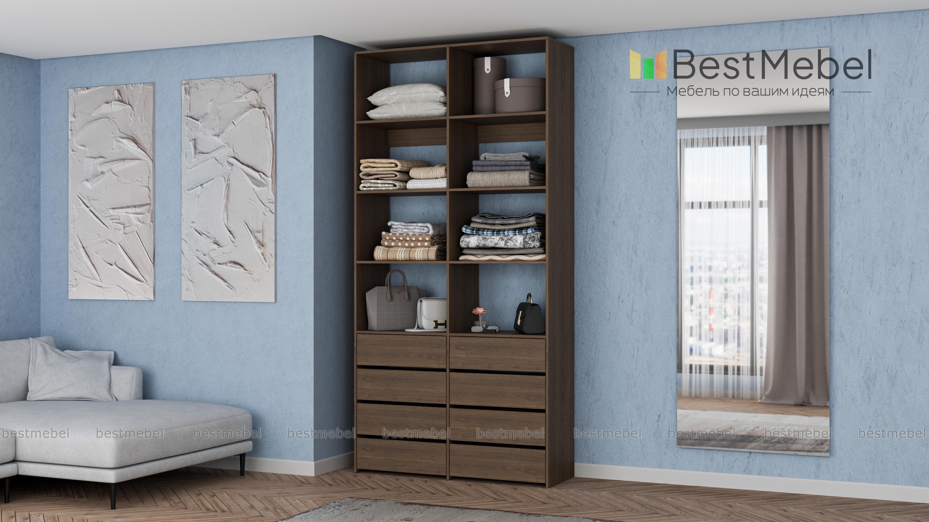 Стеллаж для одежды Мирта 40 BMS поможет вам грамотно спланировать пространство для хранения. Двухсекционная модель оборудована как открытыми полками, так и выдвижными ящиками, обеспечивая удобный доступ к разным предметам гардероба. Поверхности из ламинированной плиты отличаются износостойкостью и легко очищаются от загрязнений. Купить стеллаж для одежды Мирта 40 BMS с выбором наиболее подходящего оттенка и размеров приглашаем к нам в интернет-магазин.