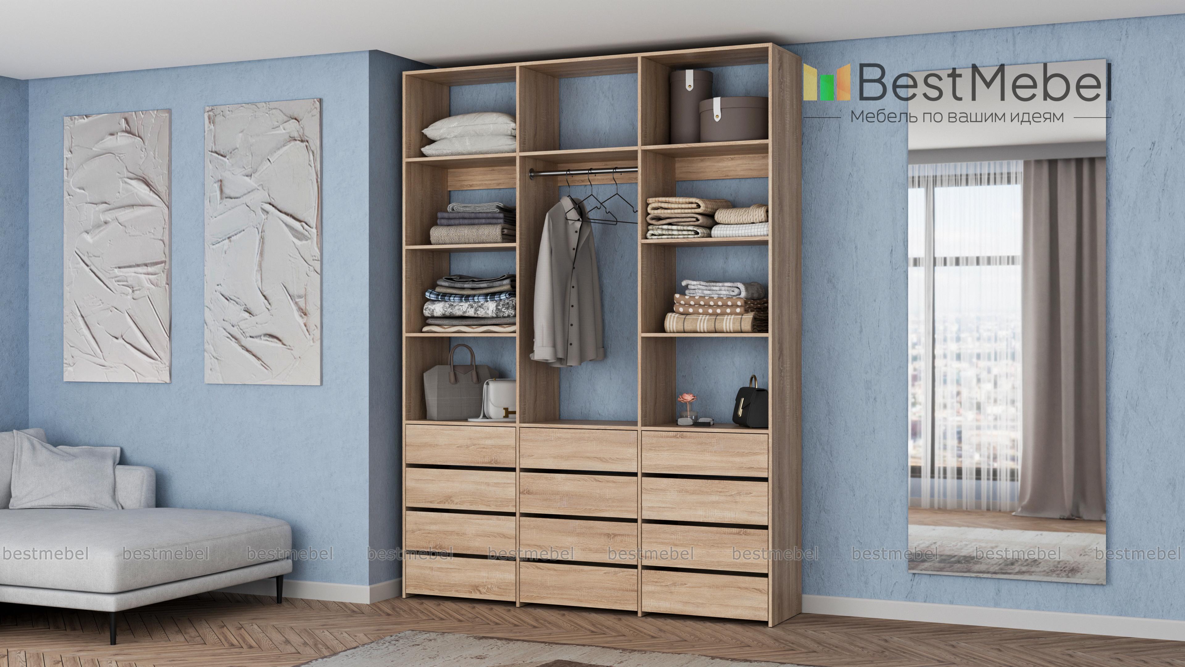 Стеллаж для одежды Мирта 49 BMS подходит для обустройства прихожих и гардеробных. Выдвижные нижние ящики, штанга и расположенные сверху и по бокам полки позволят компактно разместить одежду на вешалках и в сложенном виде, белье, обувь и аксессуары. Изготовленный из ламинированной ДСП, стеллаж отличается надежностью и долговечностью. Купить стеллаж для одежды Мирта 49 BMS вы всегда сможете в нашем интернет-магазине с индивидуальным подбором цвета и размеров.
