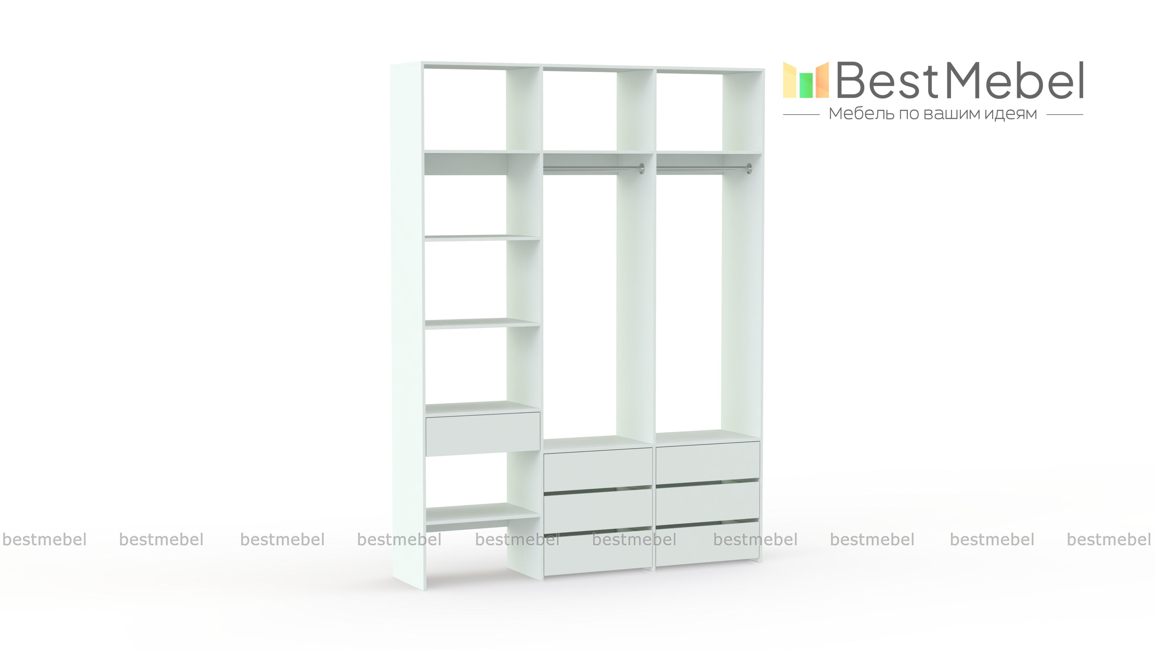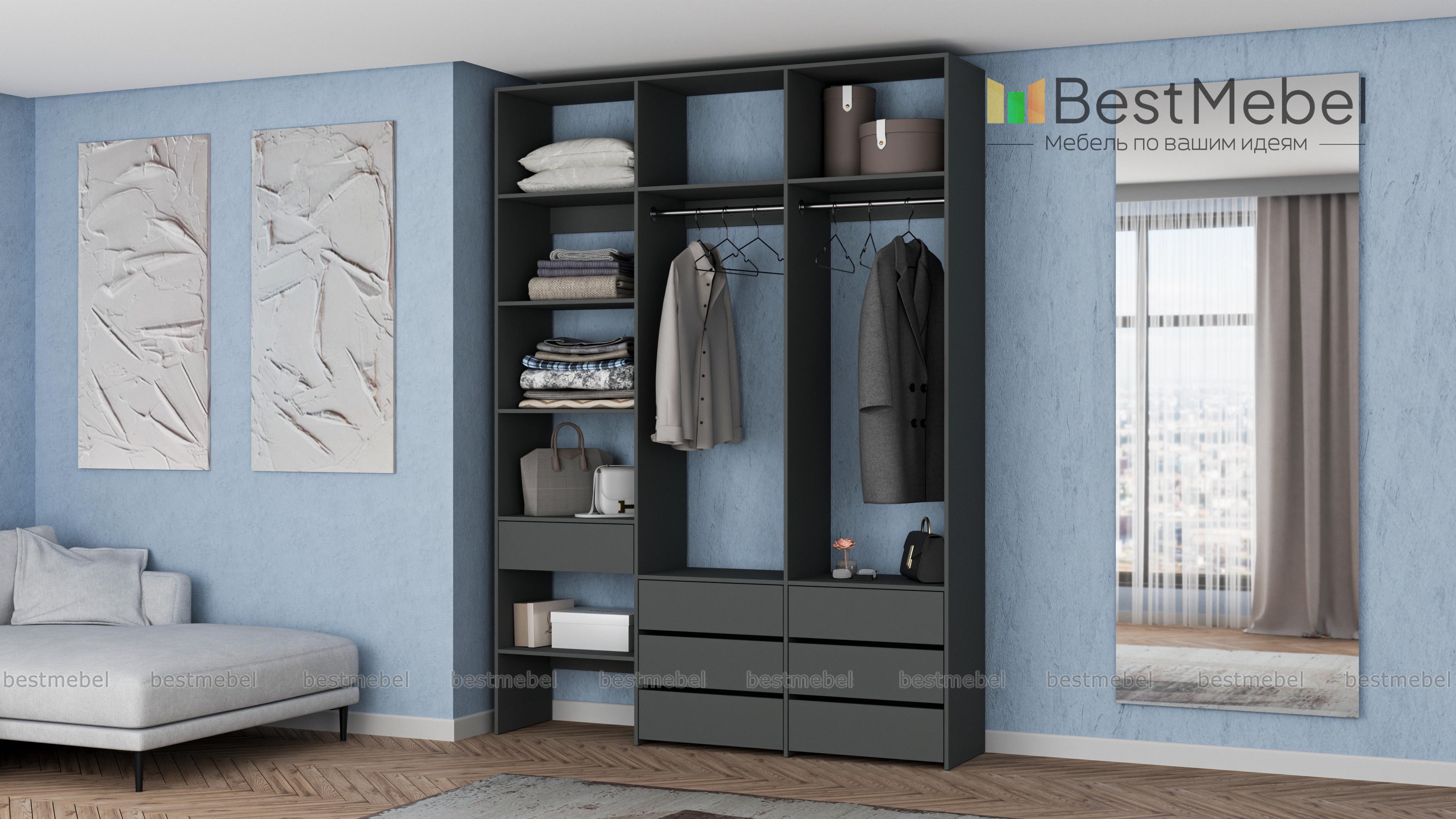 Стеллаж для одежды Мирта 52 BMS оборудован не только двумя штангами, но и расположенными на разных уровнях выдвижными ящиками и полками. Конструкция позволяет вам бережно разместить вещи на вешалках и трикотаж, коробки с обувью и корзины со всевозможными мелочами. Стеллаж выполнен из прочной ЛДСП, что обеспечивает ему долгий срок службы и эстетичный внешний вид. Купить стеллаж для одежды Мирта 52 BMS вы сможете в нашем интернет-магазине, подобрав размеры и цвет по каталогу.