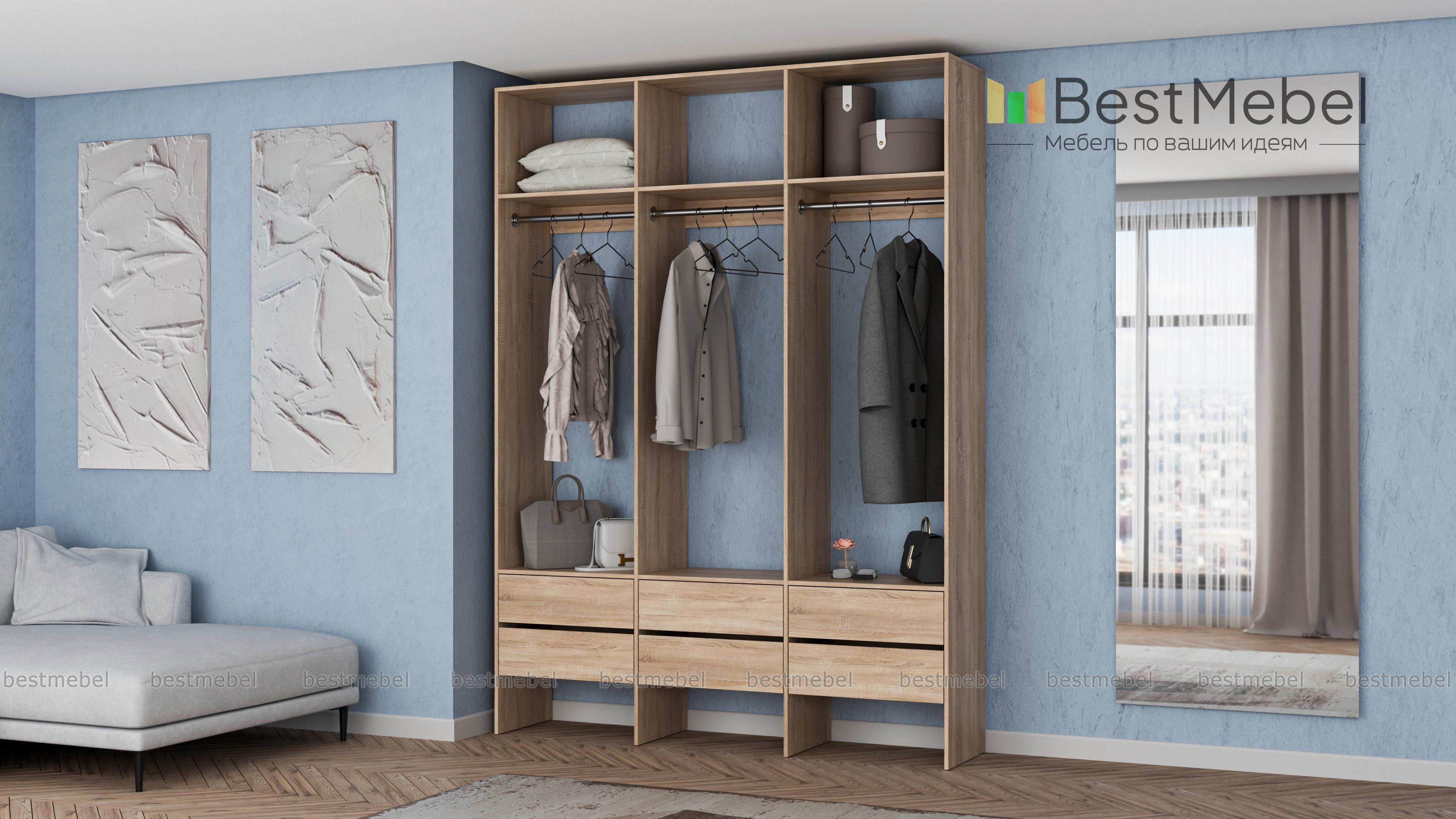 Стеллаж для одежды Мирта 55 BMS надежен и практически универсален. Открытая легкая конструкция не загромождает пространство, прекрасно вписывается в небольшие гардеробные и прихожие. Для максимально комфортного хранения стеллаж укомплектован тремя перекладинами для вешалок с одеждой, рядом просторных верхних полок и шестью выдвижными ящиками, оставляющими место для обуви снизу. Купить стеллаж для одежды Мирта 55 BMS приглашаем в наш интернет-магазин с возможностью выбора цвета и размеров.