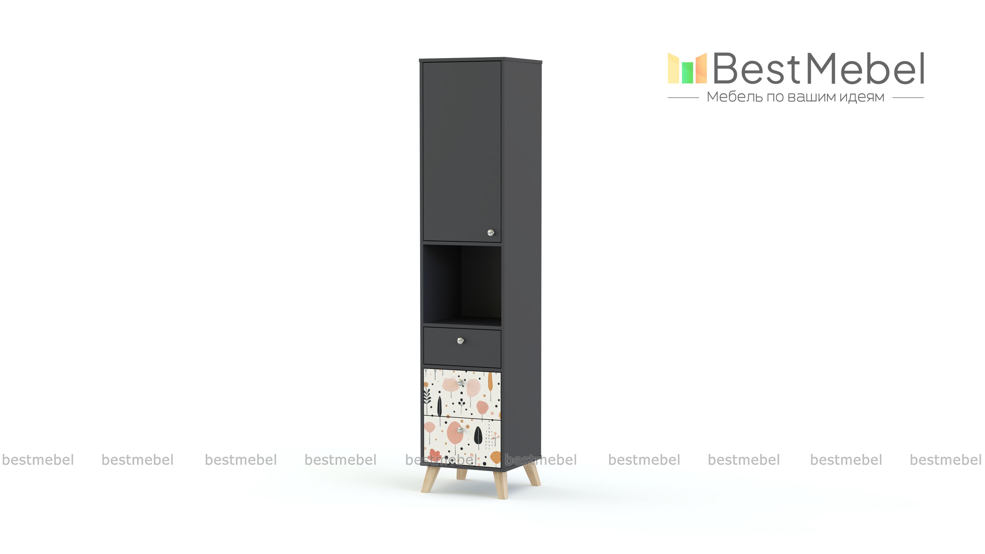 Стеллаж Эльза 4 BMS с высокими сканди-ножками легко смотрится даже в маленькой детской. На комфортной для ребенка высоте располагаются закрытое отделение с полками, просторная ниша и три выдвижных ящика, позволяя самостоятельно убирать книги и игрушки. Современный дизайн лаконичный и совсем не скучный благодаря симпатичной фотопечати на нижних фасадах. Купить стеллаж Эльза 4 BMS с выбором размеров, цвета и фурнитуры приглашаем в наш интернет-магазин.