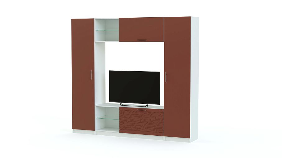 Стенка-горка Вельвет 2 Глянец BMS поможет оборудовать современную гостиную в стиле минимализм и хай-тек. Выполненная в универсальном белом корпусе и эффектном ярком фасаде, модель отличается строгой геометричной формой. Единая композиция с просторной нишей под ТВ в центре включает в себя бельевую колонку, колонку с торцевым стеллажом, низкую тумбу и комбинированную со стеклополкой антресольную секцию. Интересная деталь - 3D рисунок на фасадах. Купить стенку-горку Вельвет 2 Глянец BMS по демократичной цене приглашаем к нам в интернет-магазин.