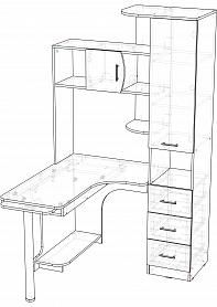Угловой компьютерный стол Лисса с ящиками BMS