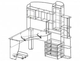 Угловой компьютерный стол Флеш 34 с полками BMS