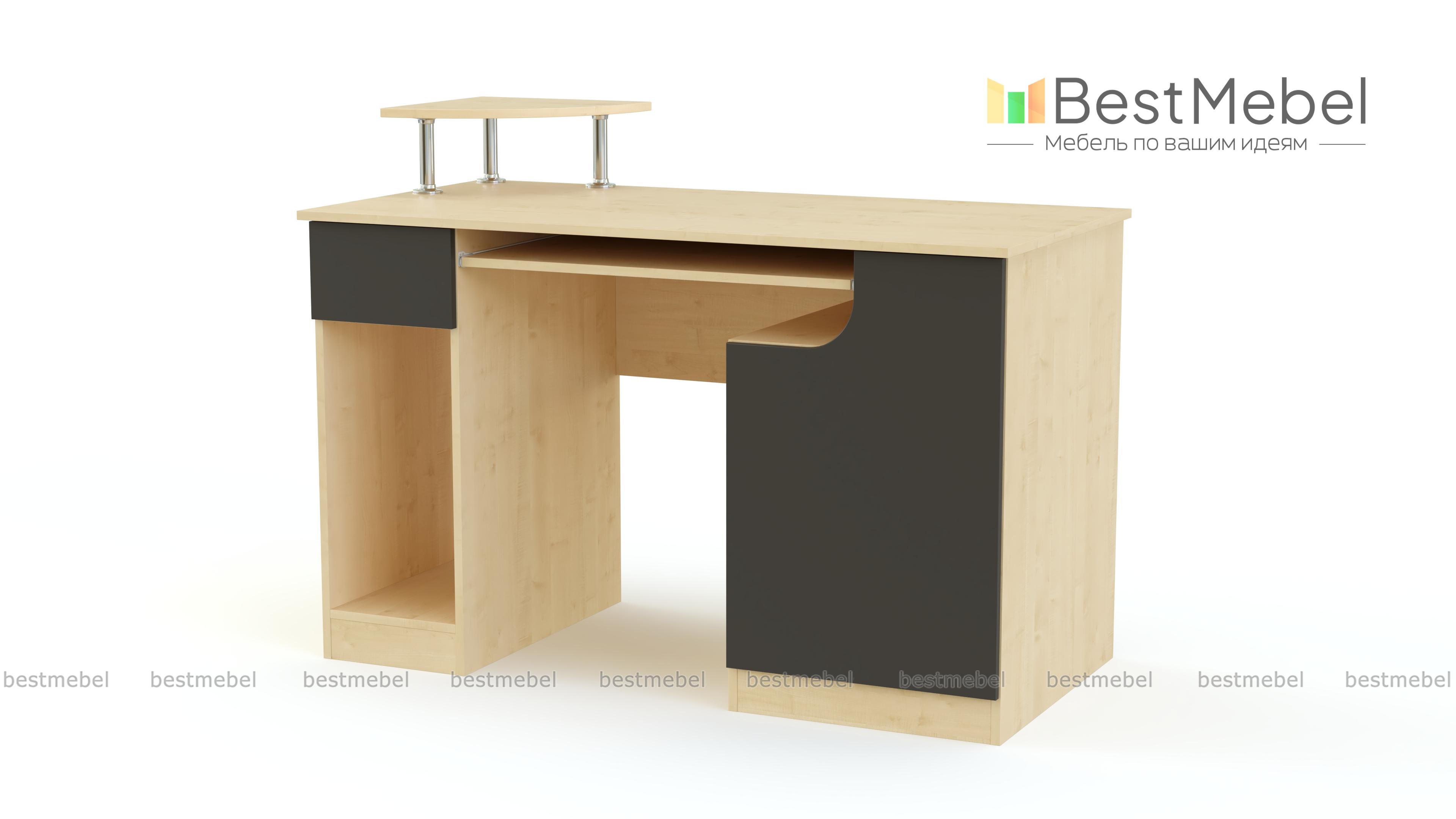 Стол компьютерный МБ-29.1 BMS – компактная модель в современном минималистичном стиле. Стол с цветными матовыми фасадами станет ярким акцентом в интерьере и поможет оборудовать комфортное для письма и работы за компьютером место. Модель оснащена выдвижной полкой для клавиатуры, подставкой под монитор, отделением для системного блока, выдвижным ящиком и распашной тумбой. Купить стол компьютерный МБ-29.1 BMS по отличной цене приглашаем в наш интернет-магазин.