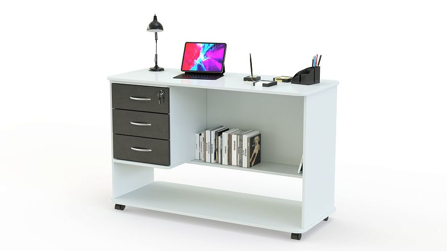 Письменный стол Юниверс 8 BMS отличается компактными размерами и легко перемещается благодаря колесикам, что делает его отличным выбором для меблировки небольших детских комнат. Разместить письменные принадлежности или ноутбук поможет просторная прямоугольная столешница, а для хранения канцелярских мелочей и учебных материалов предусмотрены три выдвижных ящика и открытая нижняя полка. Купить письменный стол Юниверс 8 BMS, выполненный в сочетании древесных тонов и голубого оттенка, приглашаем в наш интернет-магазин.