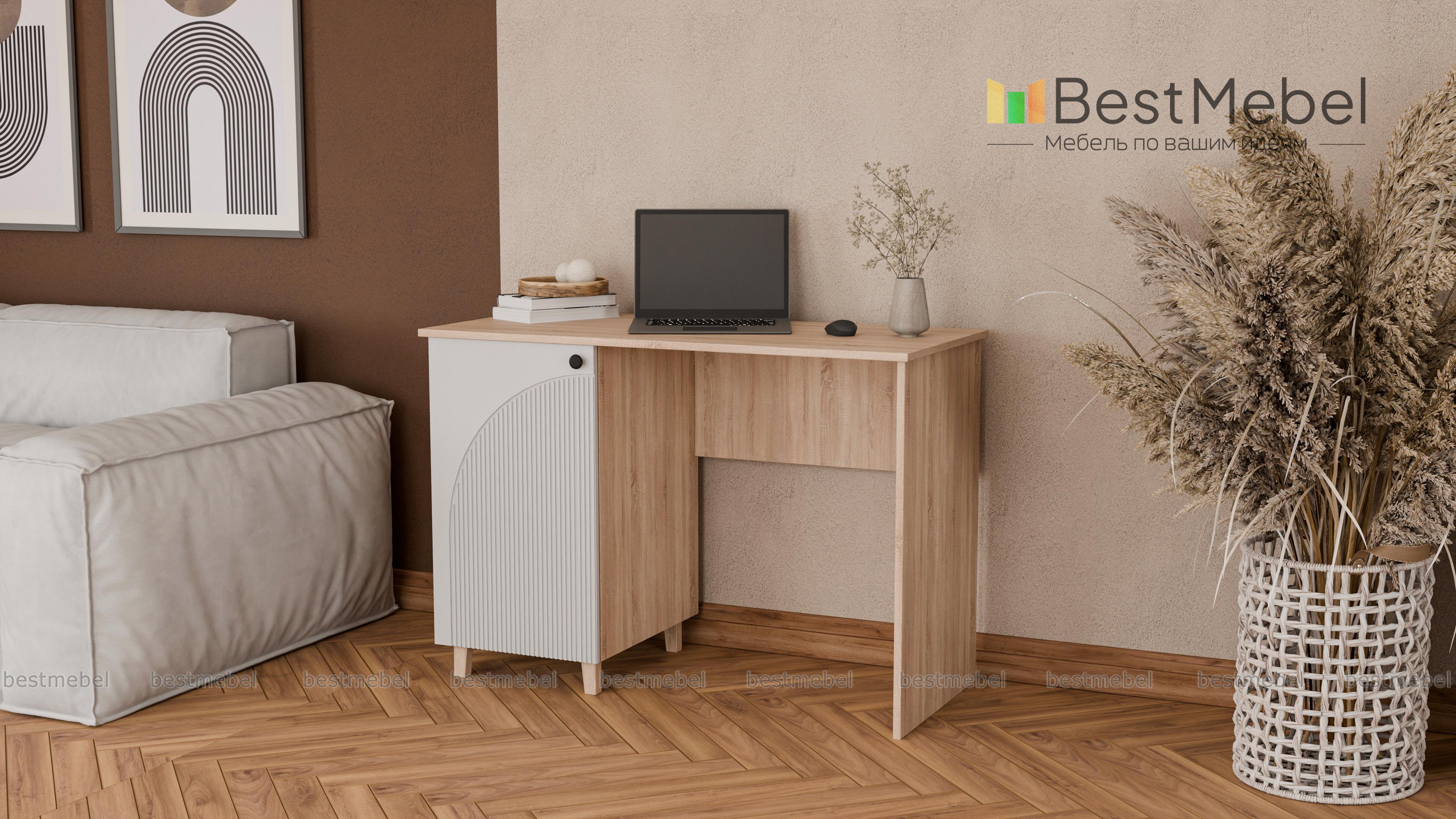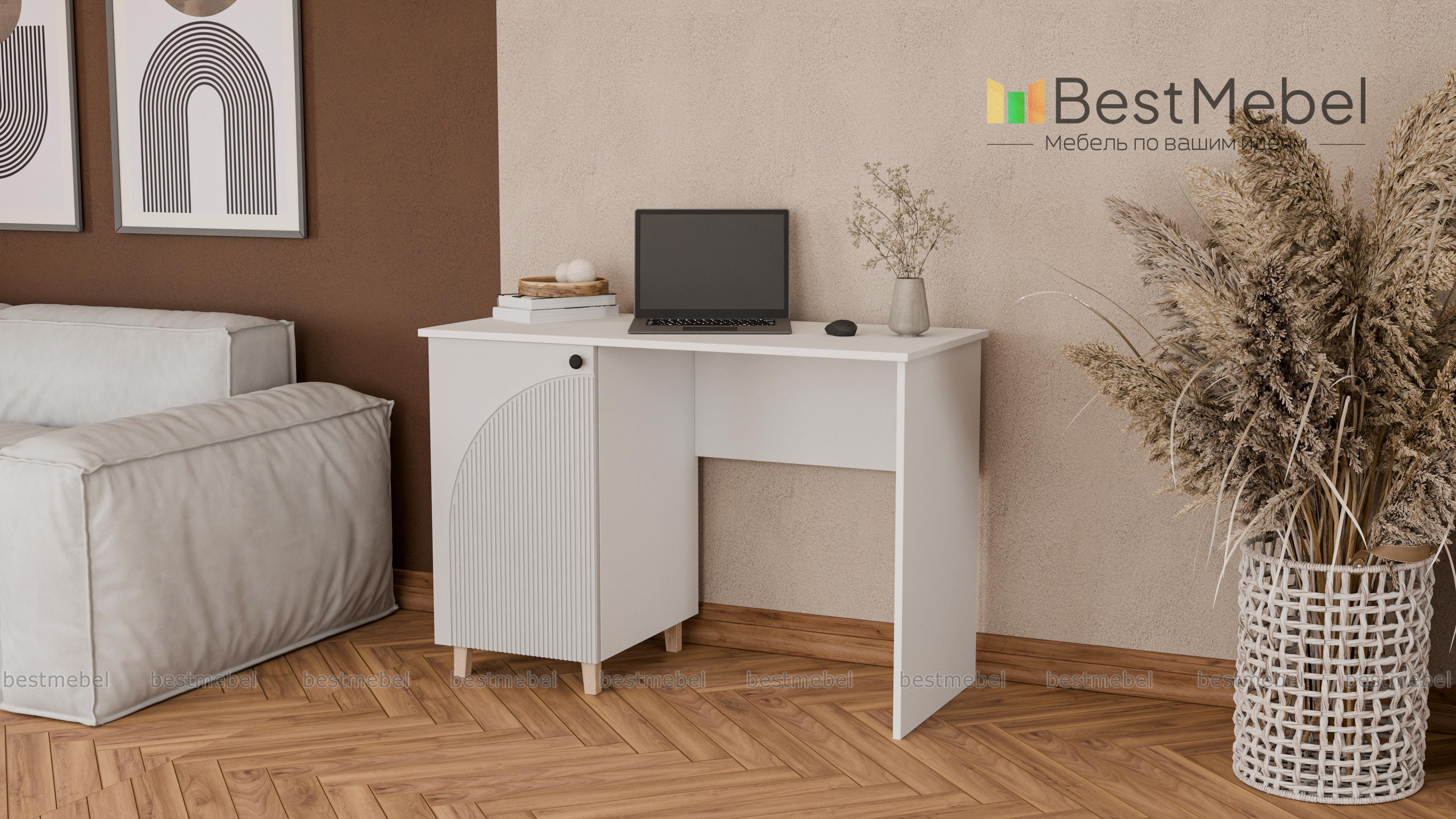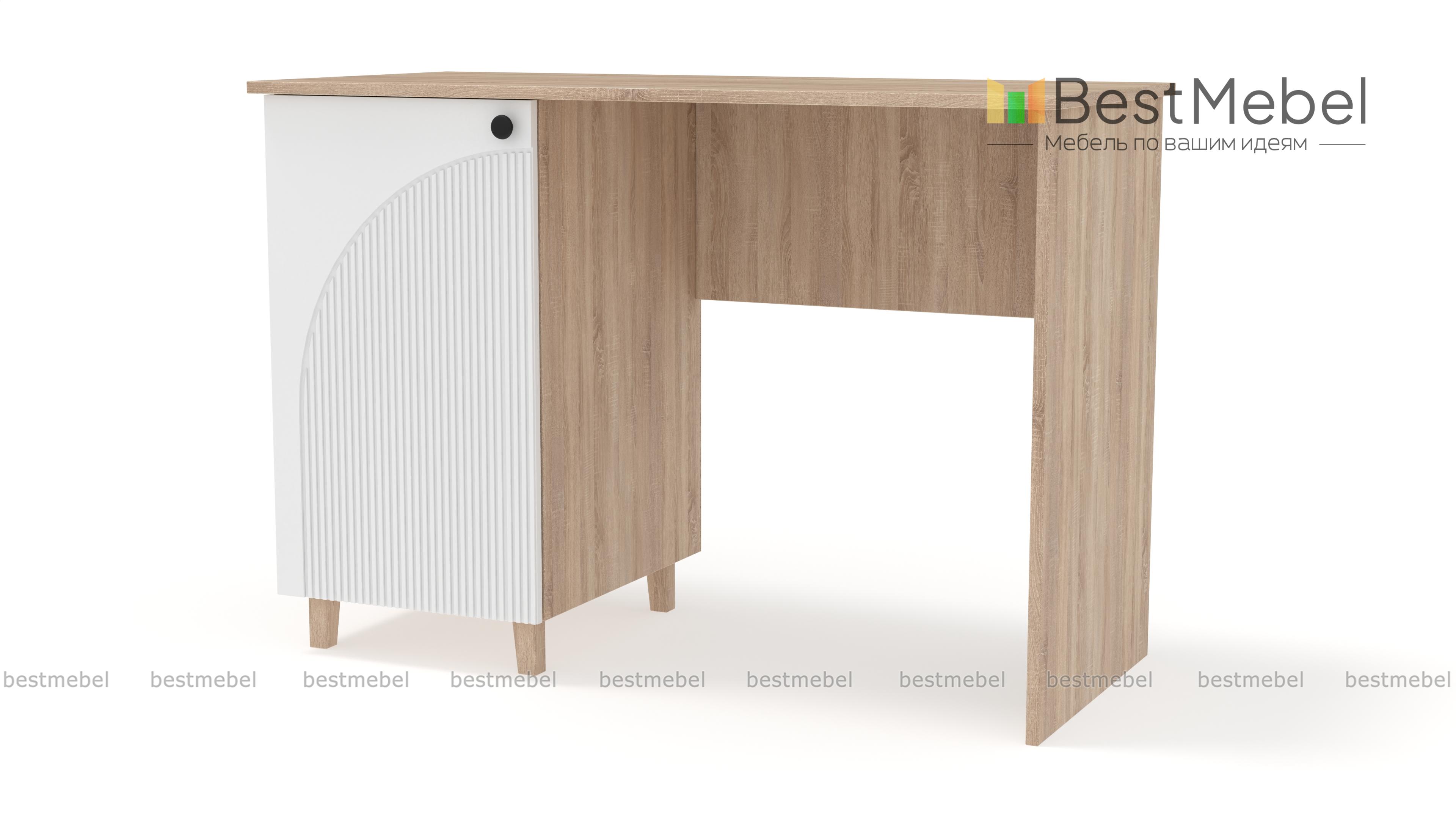 Стол письменный Вивьен 2 BMS — это классическая модель в современном дизайне, удобная для работы и учебы. Стол имеет просторную рабочую поверхность и слева оборудован распашной тумбой с полками для хранения рабочих материалов. Практичный корпус стола изготовлен из ламинированной ДСП, а стильный фасад — МДФ с оригинальным рельефом. Купить стол письменный Вивьен 2 BMS приглашаем в наш интернет-магазин с подбором необходимых размеров, цвета и фурнитуры.