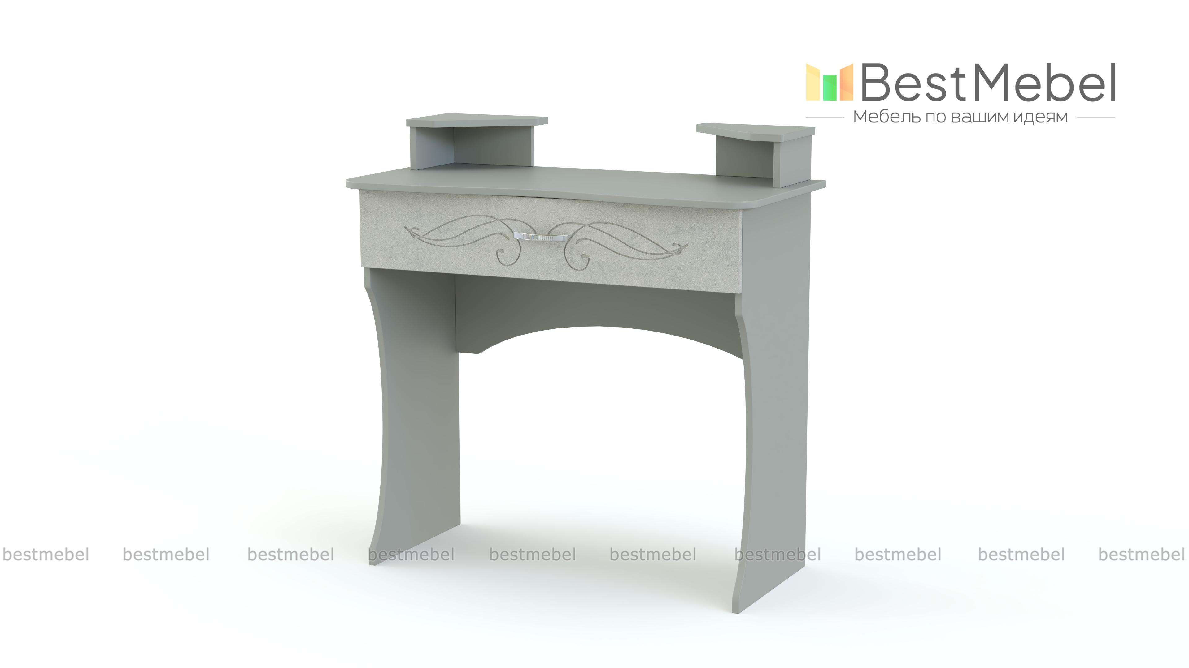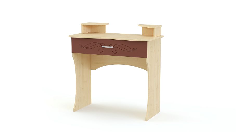 Туалетный столик Ленни 3 BMS станет практичным дополнением спального гарнитура в классическом стиле. Компактная по размеру, модель выполнена в теплых древесных тонах и украшена по фасаду изящной фрезеровкой. Под эргономично вырезанной столешницей располагается вместительный выдвижной ящик, а для необходимых под рукой мелочей предусмотрены угловые надстройки с нишами. Устойчивость конструкции обеспечивают фигурно вырезанные опоры. Купить туалетный столик Ленни 3 BMS приглашаем в наш интернет-магазин.