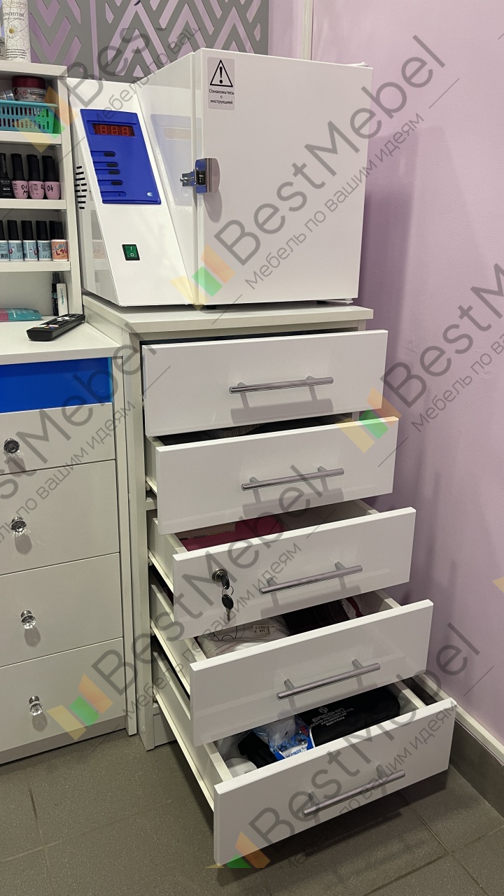 Добрый день, мой заказ 00000235865, изделие ЭСКИЗ №00000235865 Тумба Маникюрная с замком и ящиками BMS (450х840х480). Сказать, что я в восторге- ничего не сказать! Очень удобная и качественная тумба! Массивная, не обычная деревяшка, устойчивый! Переживала, что рейлинги будут «проседать» от тяжести, но нет! Они мощные!! Замочек хороший, легко закрывает и открывает- ничего не заедает! Доставка быстрая! Спасибо огромное!