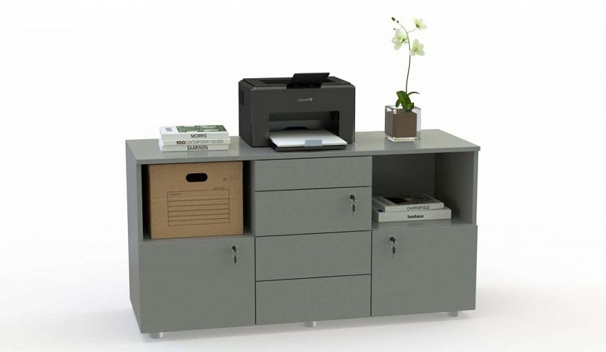 Тумба сервисная Оникс 2 BMS подходит для размещения оргтехники, хранения документов, расходных материалов и канцелярских принадлежностей. Широкая тумба оборудована двумя нишами, четырьмя выдвижными ящиками и двумя распашными отделениями с замками. Модель с гладким фасадом без лицевой фурнитуры выполнена из высококачественной ламинированной плиты и прекрасно вписывается в интерьер современного офиса. Купить тумбу сервисную Оникс 2 BMS вы сможете в нашем интернет-магазине, подобрав гармонирующее с другой мебелью цветовое решение.