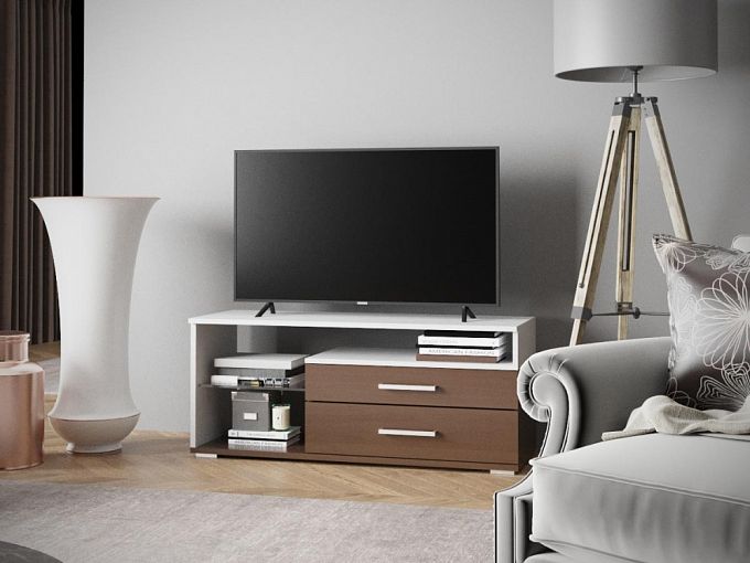 Тумба ТВ-2 M BMS отличается компактными размерами, демократичной ценой и станет незаменимой частью интерьера гостиной или спальни в современном стиле. Модель оборудована просторной столешницей под ТВ, двумя выдвижными ящиками, нишей и стеклянной открытой полкой. Вместительная тумба в контрастных тонах под массив дерева позволит разместить аудио- и видеоаппаратуру, книги и разнообразные мелочи. Купить тумбу ТВ-2 M BMS вы всегда сможете в нашем интернет-магазине.