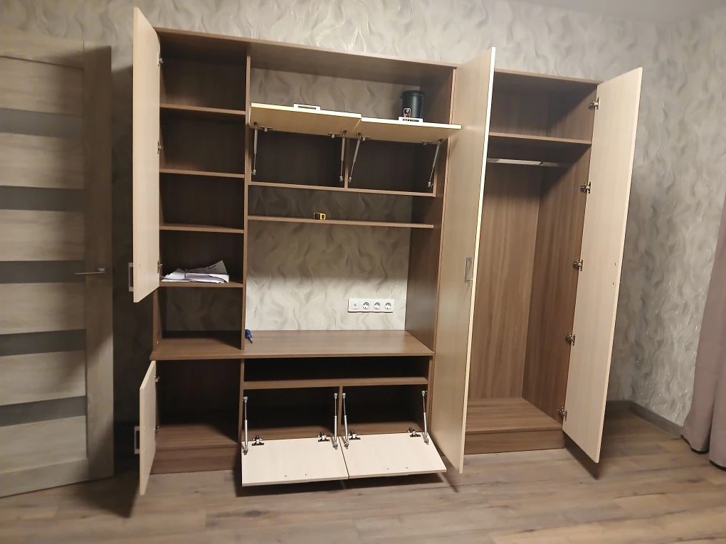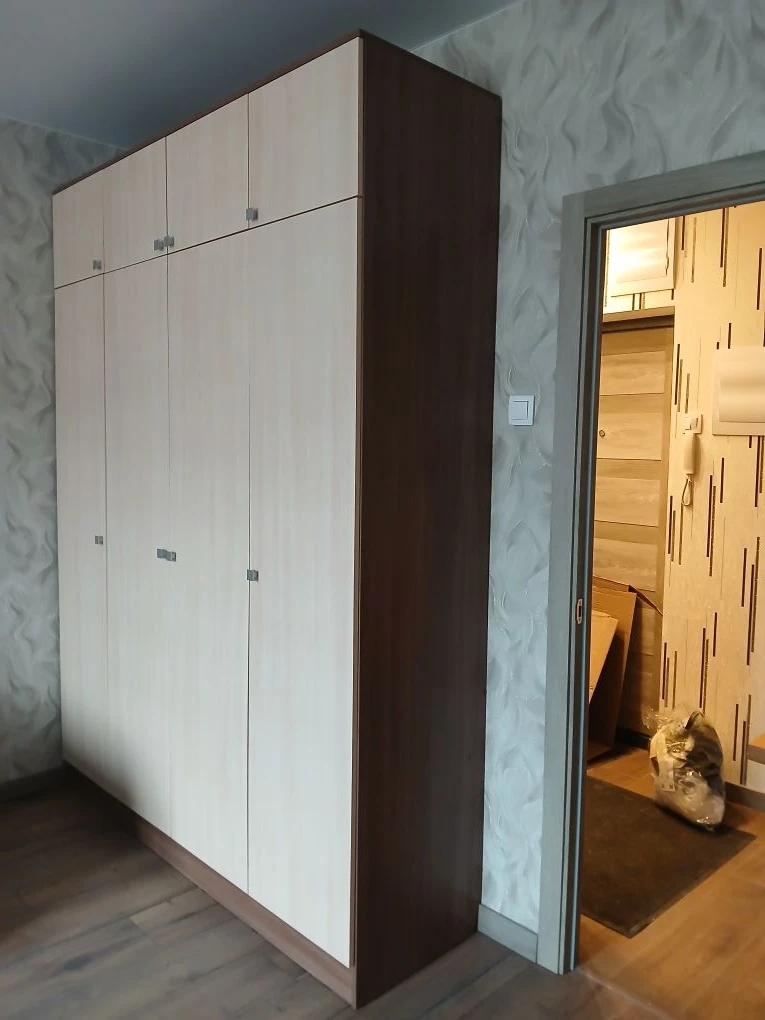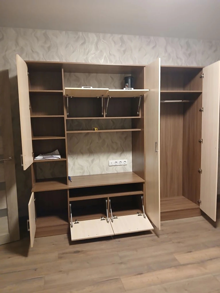 Заказ 00000358224 Обставлял однушку, нужен был вместительный шкаф, но что бы не перегрузить комнату 16 квадратов. Выбрал Поларис 4.6А BMS.  Большой 4-х створчатый, Высокий, места много. Очень удобно что можно менять размеры, материал фасадов, внутреннее наполнение. Вариантов исполнения масса. Я заказал себе шкаф, гостинную, компьютерный стол и всё сделал под один цвет и дизайн, удобно. При заказе менеджер всё согласовал, уточнил все узкие моменты. Изготовили быстро, доставили в срок. Собирал сам, в принципе не сложно, но не хватает пошаговой инструкции. Несколько раз пришлось возвращаться на несколько шагов назад так как упустил какие-то моменты. И регулировка восьми дверей это конечно тот ещё квест. В целом шкаф хороший, качество достойное.