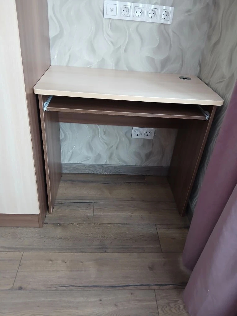 Нужен был самый простой стол для ноута или моноблока, без всяких ящиков, полок и прочего. Самое главное что бы встал в промежуток между шкафом и стеной. Хорошо что БестМебель может изменять изделия в широком спектре параметров. Подогнал размер, выбрал цвет под остальную мебель, столешницу потолще, кромку толстую, заказал дополнительно выдвижную полку под клавиатуру. Получился отличный стол. Изготовили быстро, привезли вовремя. Качество хорошее. собирать не сложно.