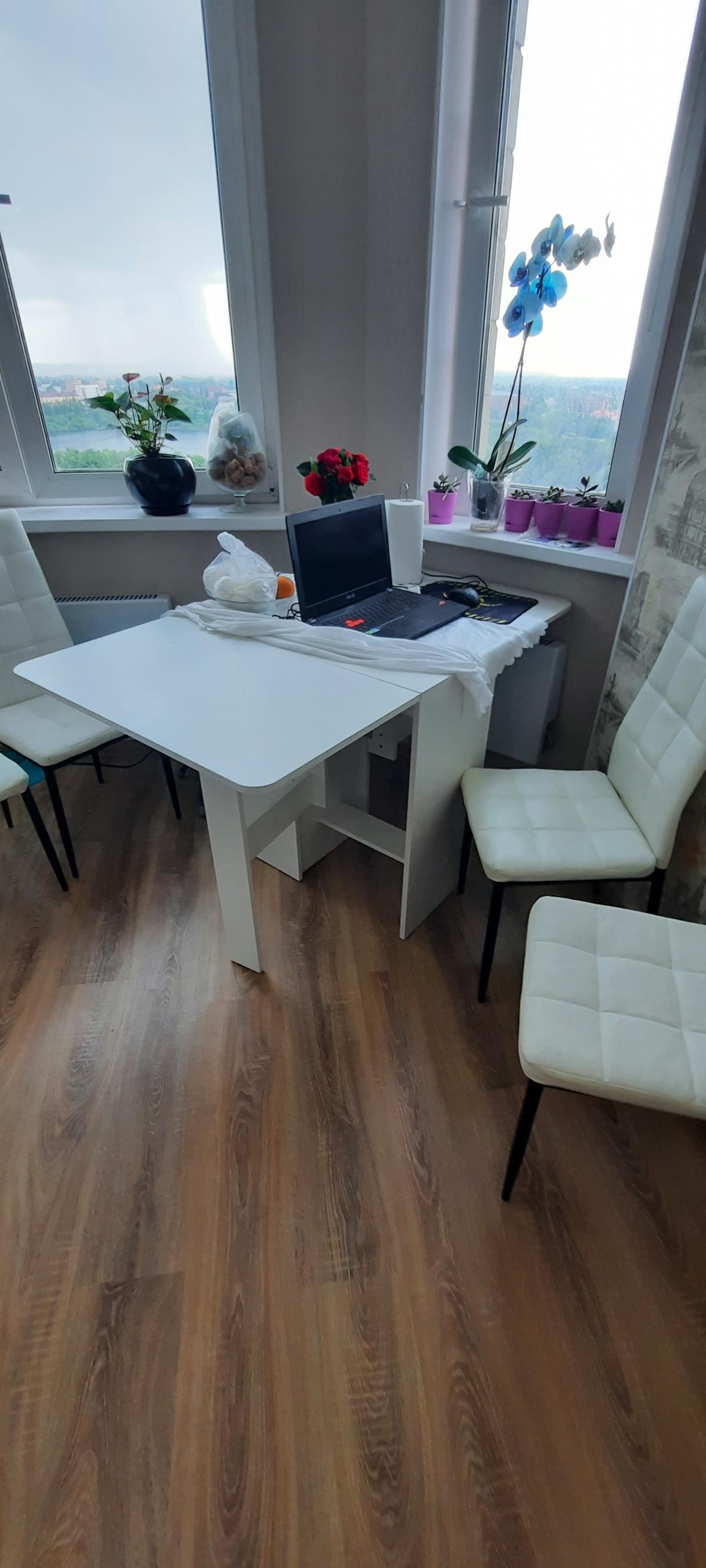 Заказ 00000657138. Очень удобный стол. Хорошо вписался в белую кухню. Вместительный. При необходимости раскладывается в стол на 10 персон. Покупкой очень довольны.