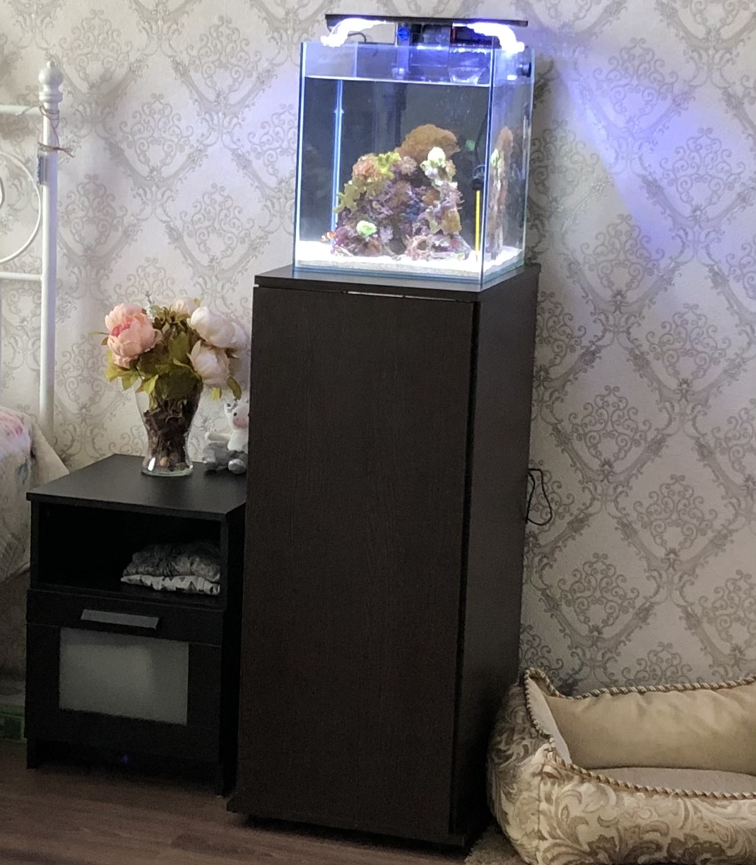 Очень хорошая тумба, выдерживает аквариум в 45 литров. Очень удобно, что размеры можно сделать под заказ - любые. И цена приемлемая. Привезли тумбу в обещанный срок, собирали мы ее сами, очень легко собирается. Рекомендую к покупке.