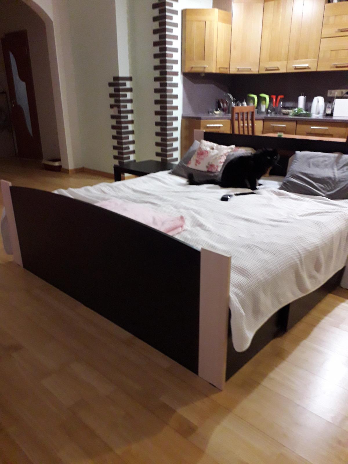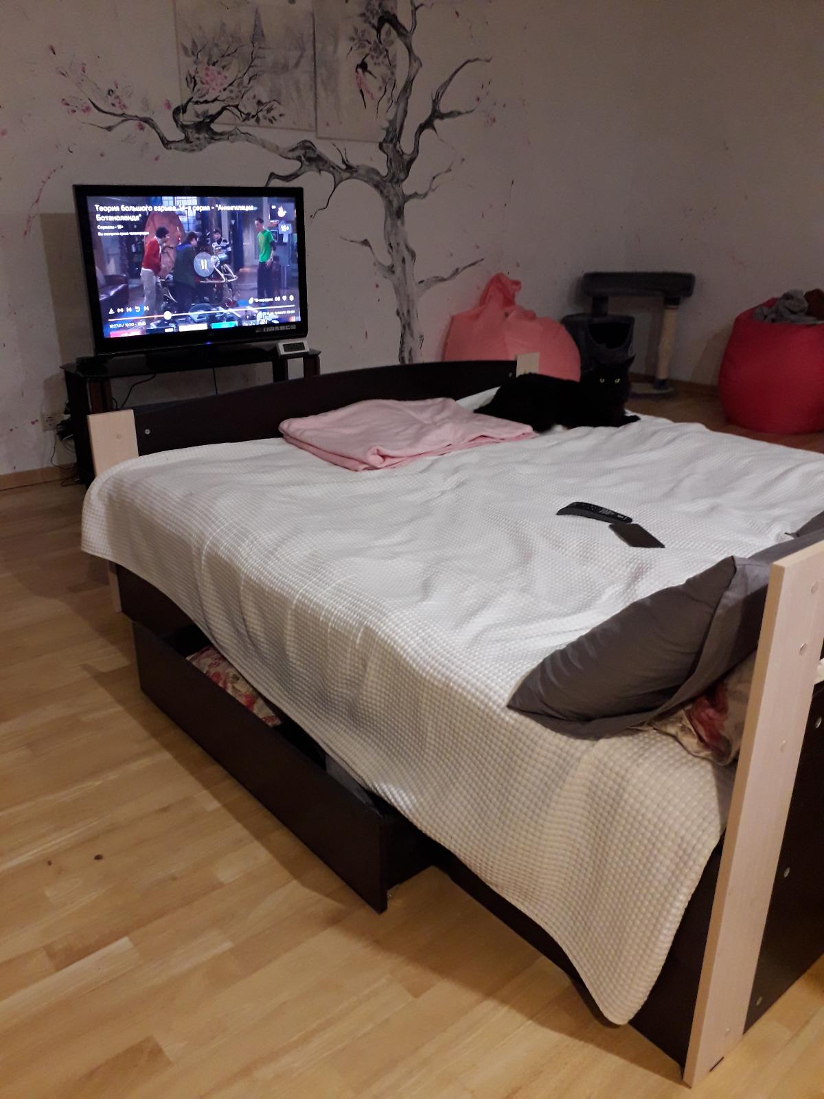 Кровать очень хорошая,  добротная, удобная, спасибо большое,  понравилась. Два выдвижных ящика, цвет в точности, как заказывали.Дизайн можно было бы упростить, спинка из цельного массива была бы удобнее .Внутри помимо выдвижных ящиков есть ещё много места для хранения того, что используется не часто, например ёлочные украшения,  обувь посезонно и т.д Доставка бесплатно и цена на кровать очень демократичная.