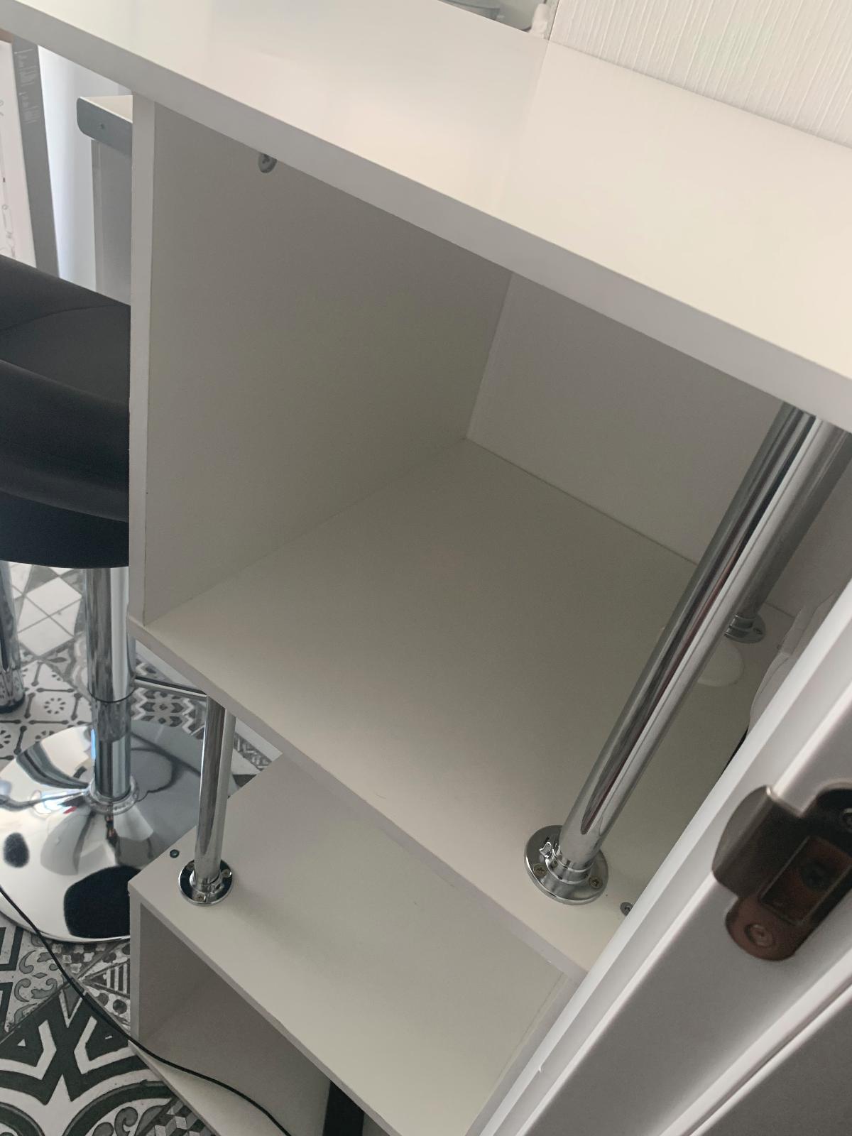 Очень удобный и функциональный столик на колесиках, легкий, мобильный. Размеры заказала по своим параметрам, поэтому он поместился именно там, где я хотела. Собирается легко (по сземе), но с установкой выдвижного ящичка возникли небольшие проблемы — схема на установку направляющих полозьев не приложена и пришлось искать ее в интернете.