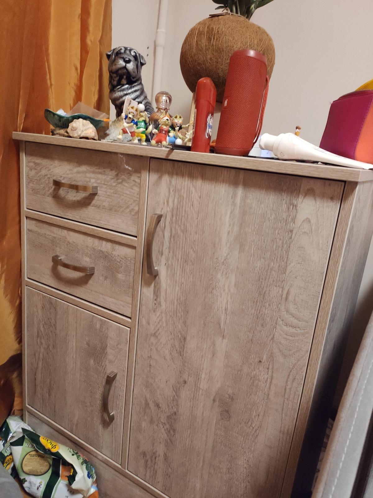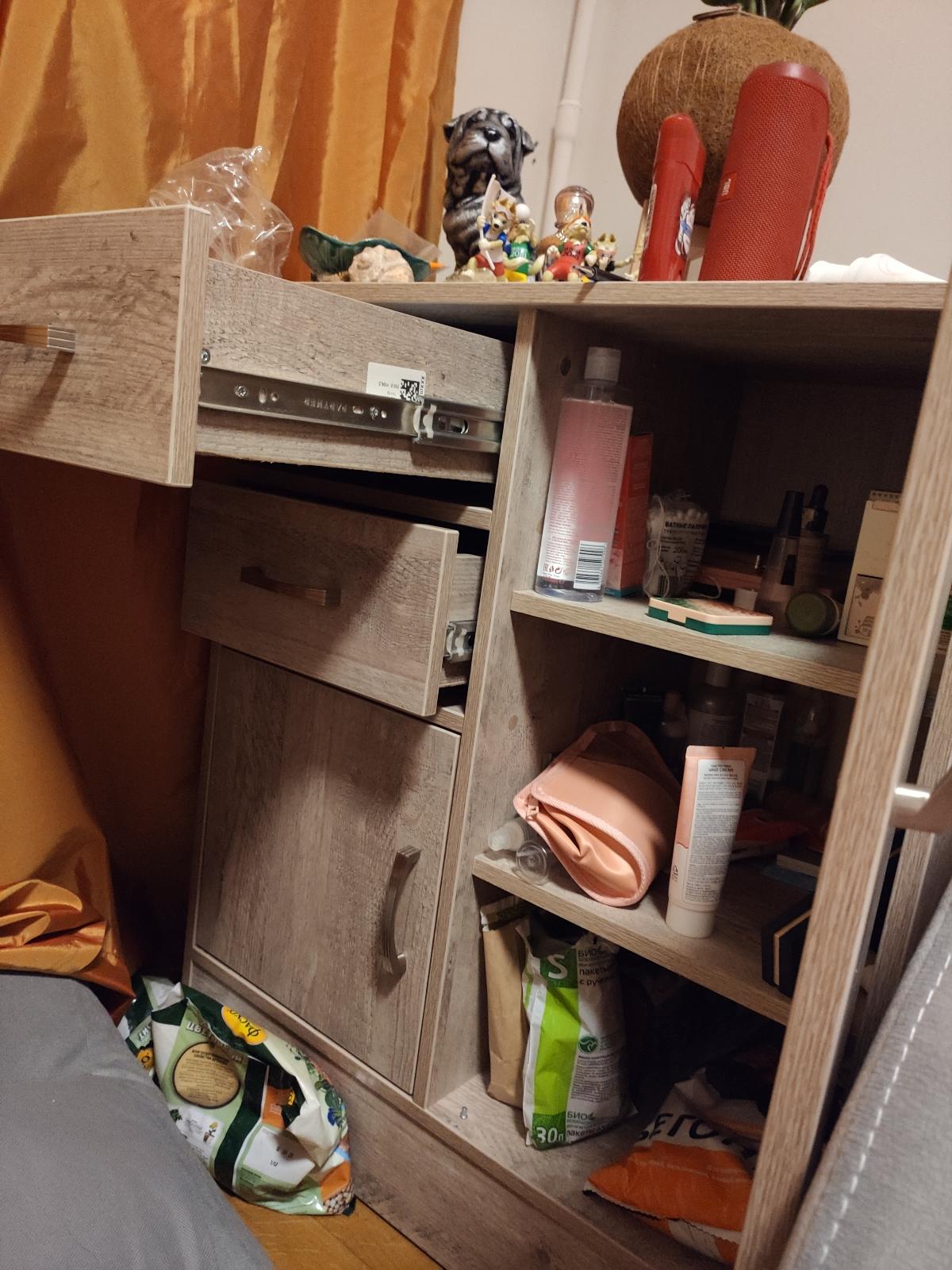 Всем добрый день! Хотелось бы оставить отзыв по поводу чудо-комода. Я его называю член семьи, так как помогает во всем:как тумбочка-пожалуйста, как в ящик положить- пожалуйста, подвинуть его пожалуйста. Он очень легкий, удобный. Если честно в моей семье, где одни мужчинки он самое оно. Положила в него полотенца и для детей удобно не устраивают бардак в шкафу, взяли и мыться побежали. А дизайн просто супер, особенно где есть дети и к тому же маленькие. Мои дети не сразу поняли, что это ручки. Слов нет одни эмоции. Теперь главное, чтоб долго прослужил, так как попал в многодетную семью.