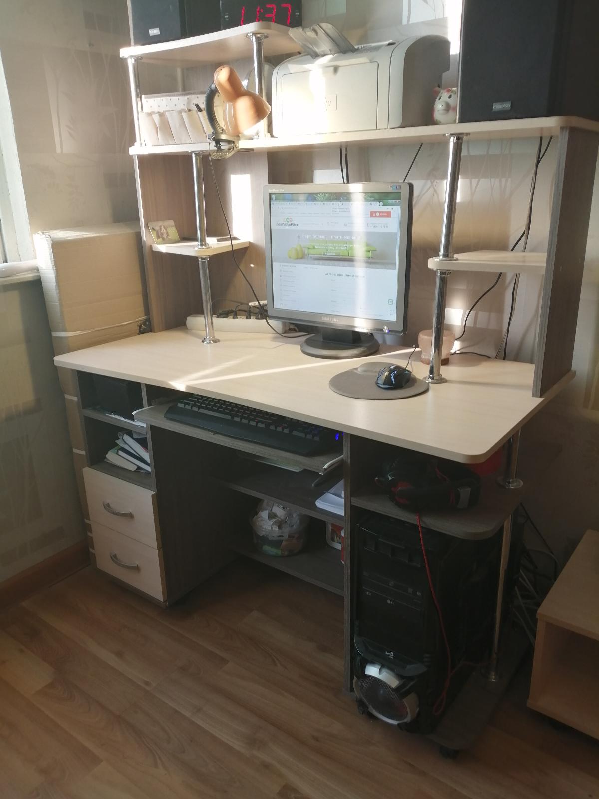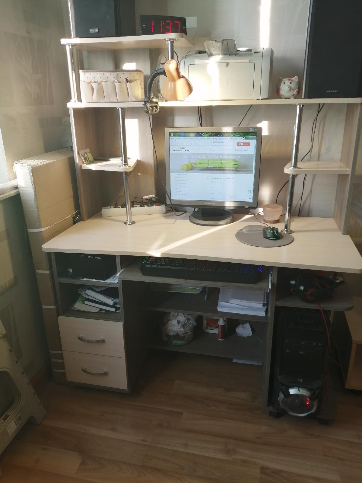 Сейчас многие работают удаленно. И у меня возникла проблема -это отсутствие рабочего места. Ноутбук таскала по всей квартире. Нужен был стол конкретных размеров. Зашла на сайт BestMebelShop. Все очень удобно. Выбор размеров, цвета, фурнитуры изделия, все можно делать самой пошагово. Если возникали вопросы, менеджер тут же объясняла по телефону, очень дружелюбно, без надрыва. Я заказала письменный стол (00000479338), размеры 950х740х510. Доставка была в четко обозначенное время 26.08.2020.Сборка очень простая, заняла не много времени. В целом столиком я довольна. Компактный, вписался в интерьер, очень удобен для работы за ноутбуком - идеальный вариант.
