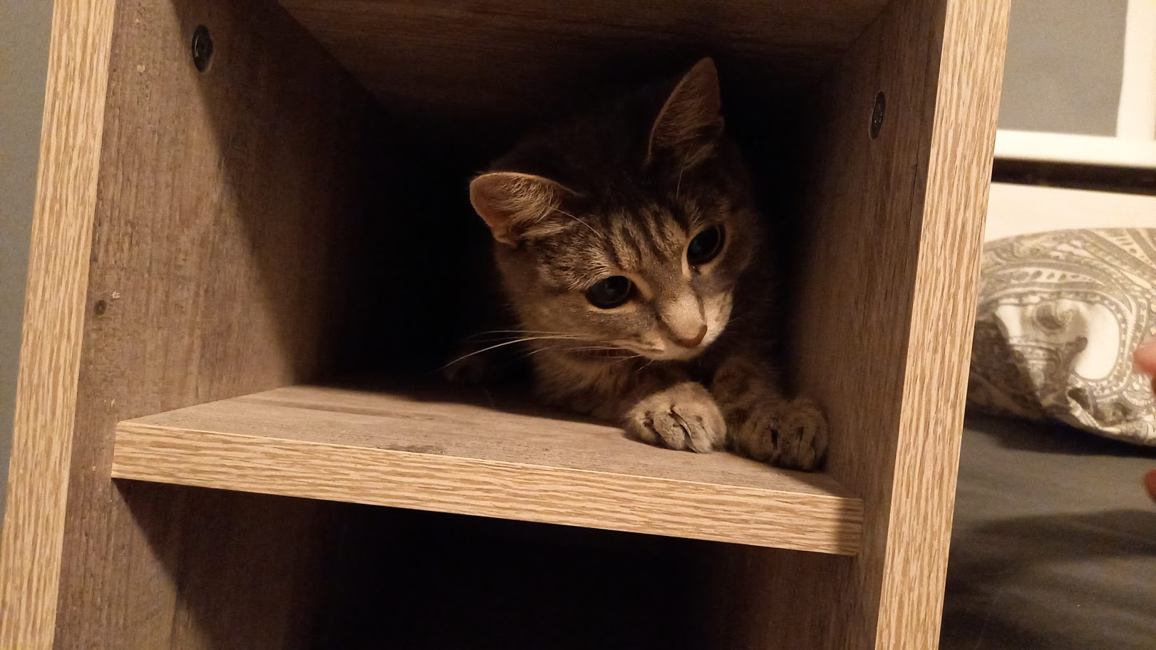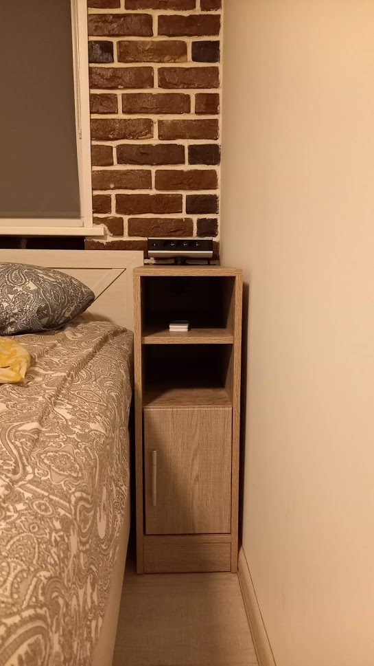 Заказ номер 340973.Так получилось, что нужна была тумба не более 27 см в ширину. И таких тумб нет в интернете кроме как здесь. Идеально вписалась в планировку спальни, даже плинтус подрезать не пришлось. Размеры выбирал стандартные, важна была именно ширина. Тумба невероятно крепкая, что удивило, давно не встречал такое хорошее ЛДСП. И очень понравился конструктор на сайте, где можно помимо размеров, выбрать цвета, ручки, даже цвет кромки можно поменять. Хорошо переносит нагревание - кружка с горячим чаем не оставила следов до сих пор.Собирал сам, сборка не доставила никаких проблем.Ну и это теперь одно из любимых мест нашей кошки:)